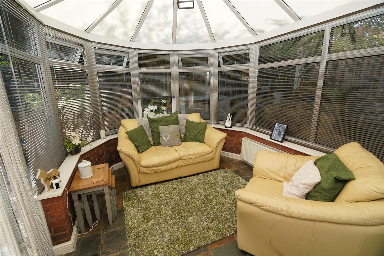 Half brick construction with uPVC double glazed windows, polycarbonate roof and power and light connected, three windows to rear, four windows to side, double radiator, ceramic tiled flooring, uPVC double glazed french doors to garden, door to: