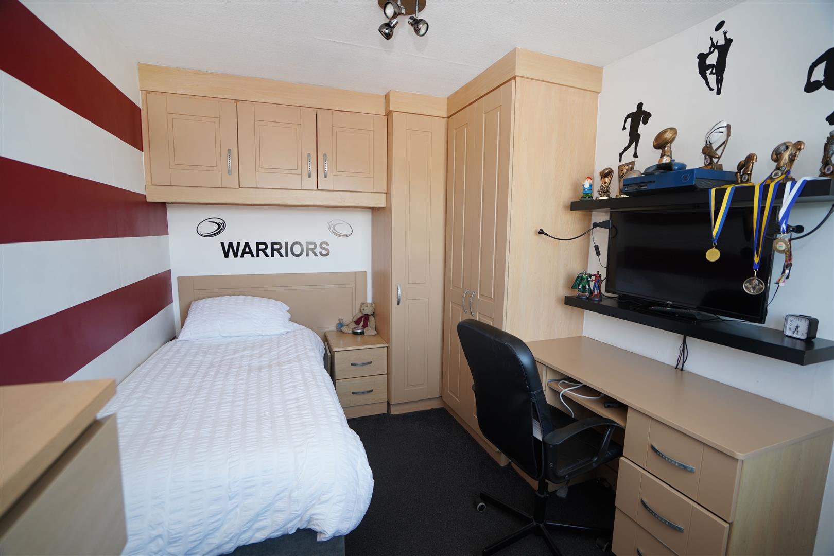 UPVC double glazed window to rear, fitted bedroom suite with a range of wardrobes comprising triple wardrobe(s) with hanging rails, shelving, overhead storage, cupboards and drawers, further two single wardrobes, radiator.