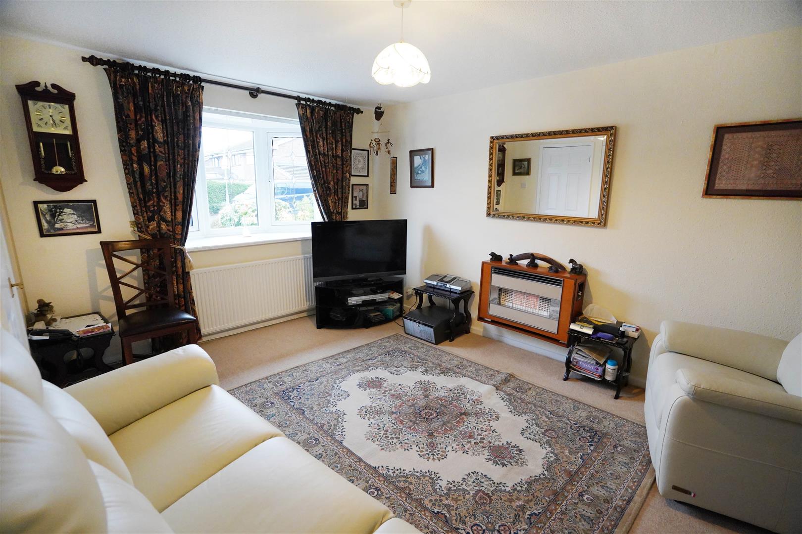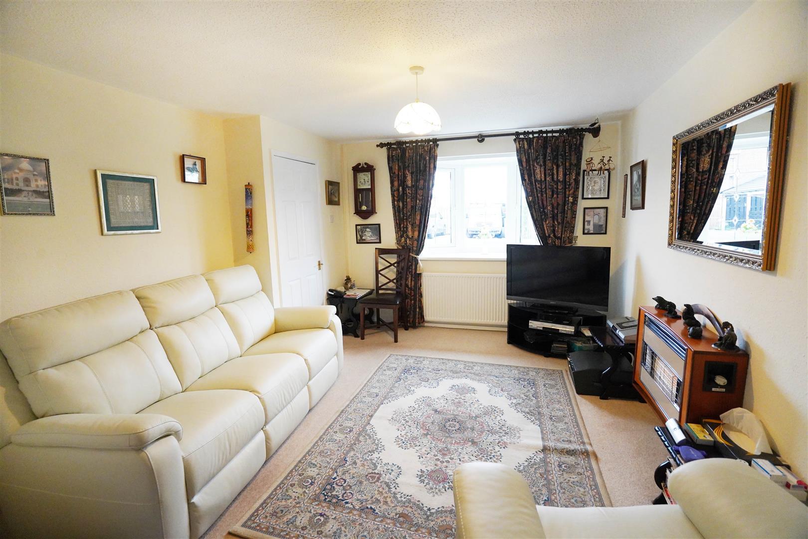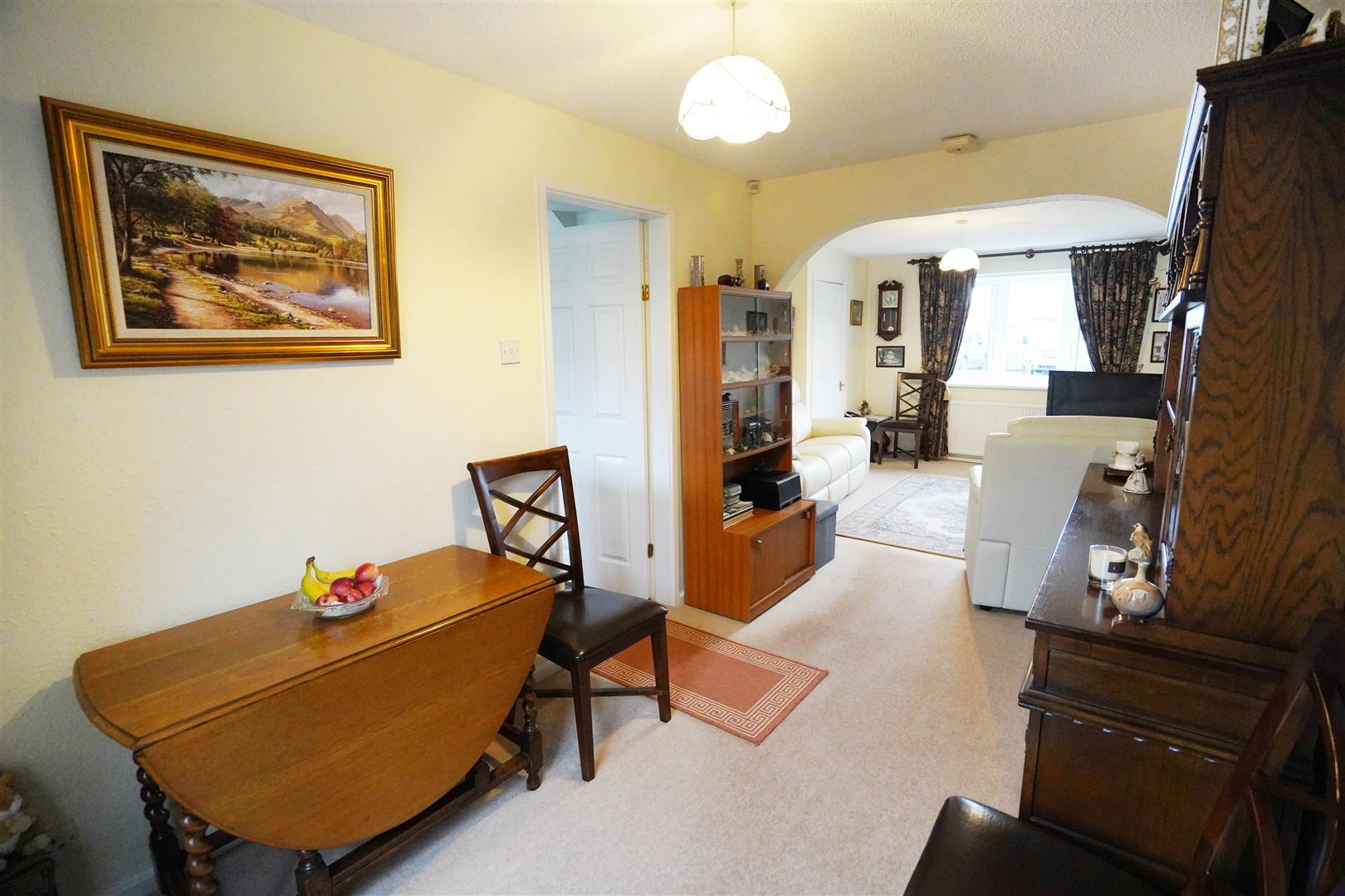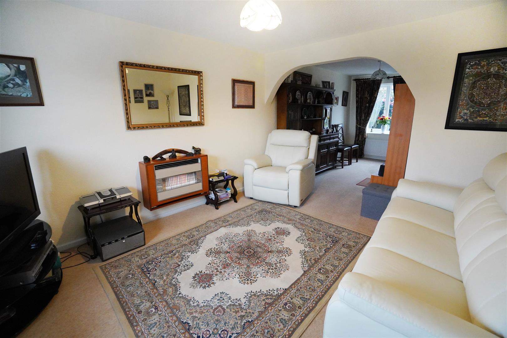UPVC double glazed leaded bay window to front, wall mounted gas fire, radiator, archway, door to: