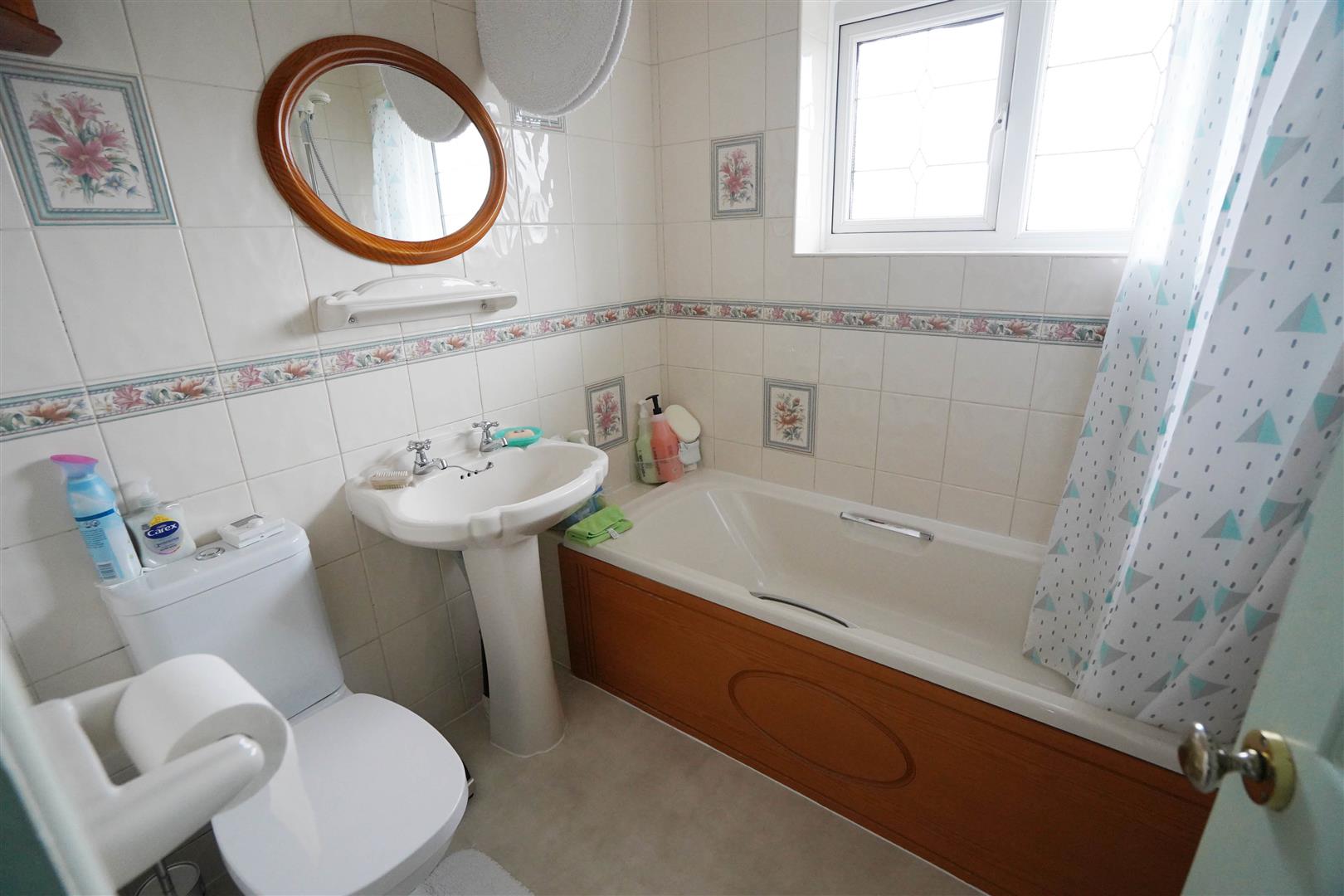 Fitted with three piece coloured suite with comprising, deep panelled bath with shower over, pedestal wash hand basin and low-level WC, full height ceramic tiling to all walls, extractor fan, uPVC frosted double glazed leaded window to front, radiator.