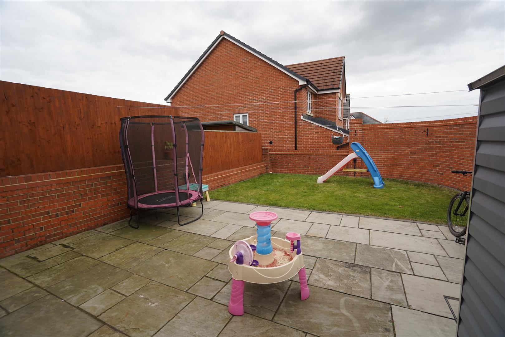 Open plan front garden, extensive tarmac driveway to the side with car for two cars with lawned area and shrub borders, paved pathway leading to front entrance door. Private rear garden, enclosed by brick wall to rear and sides, large paved sun patio with lawned area, side gated access, outside cold water tap, security lighting and power sockets