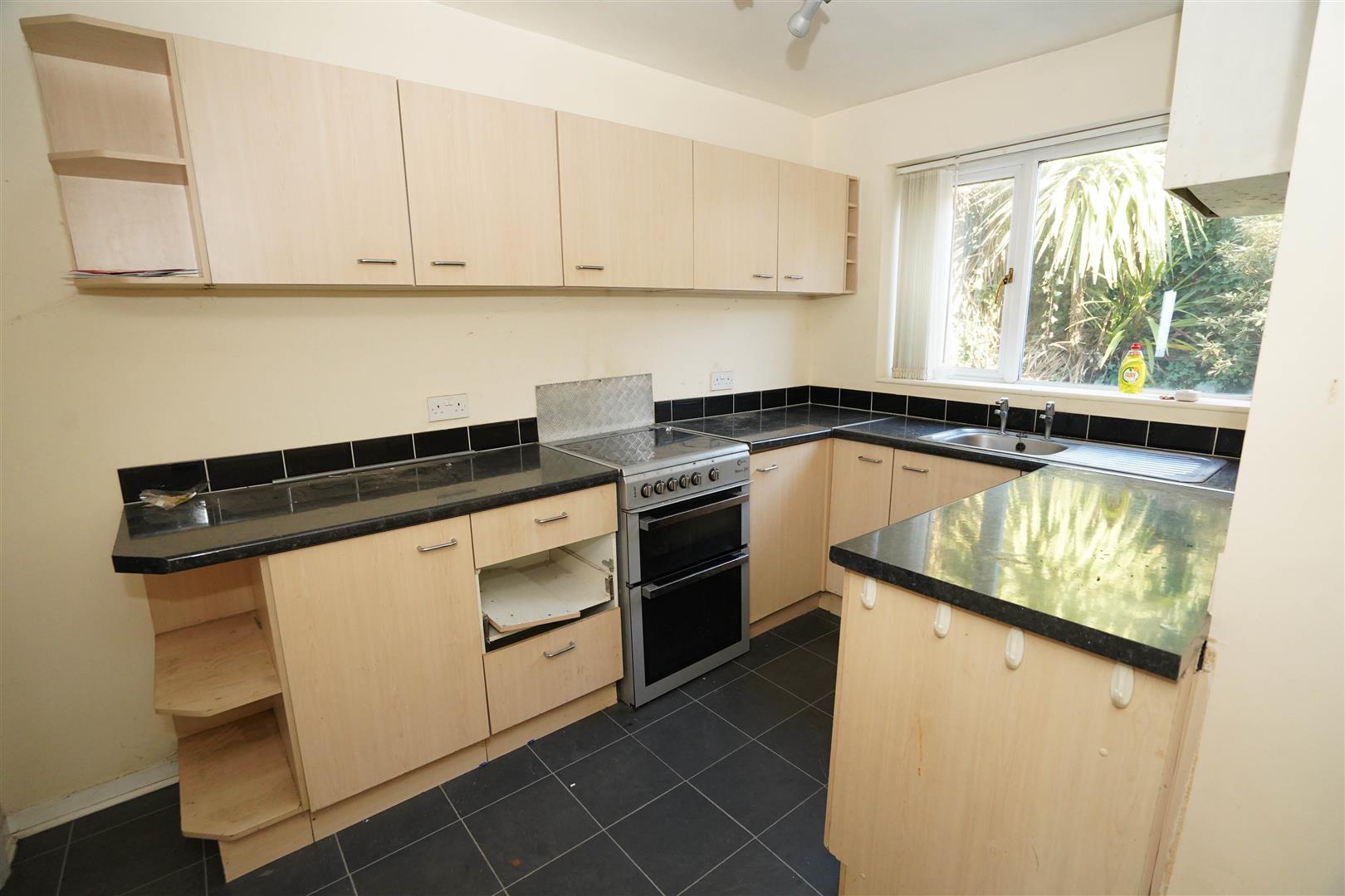 Fitted with a matching range of base and eye level cupboards with contrasting round edged worktops, stainless steel sink unit with tiled splashbacks, plumbing for washing machine, electric point for cooker, tiled flooring, open plan, door to: