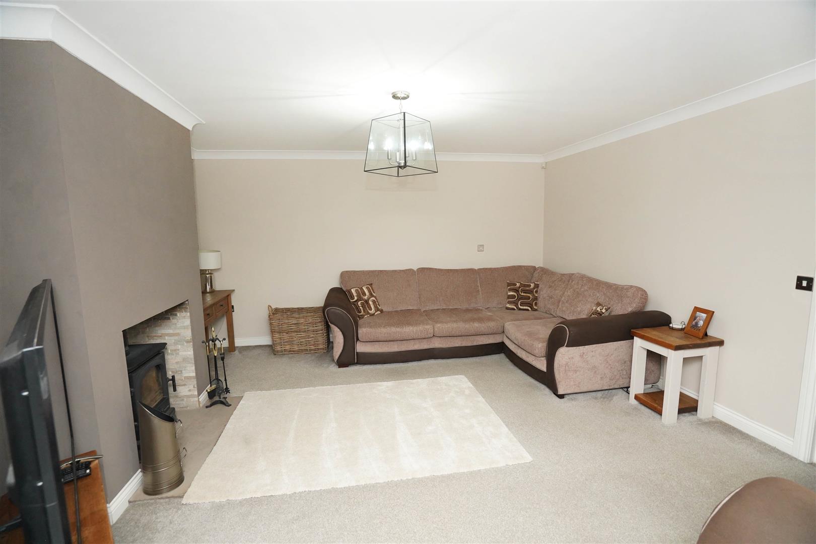 Box window to front, fireplace with tiled inset and flagged hearth, cast- iron solid fuel burner stove with glass door in chimney, double radiator, coving to ceiling.