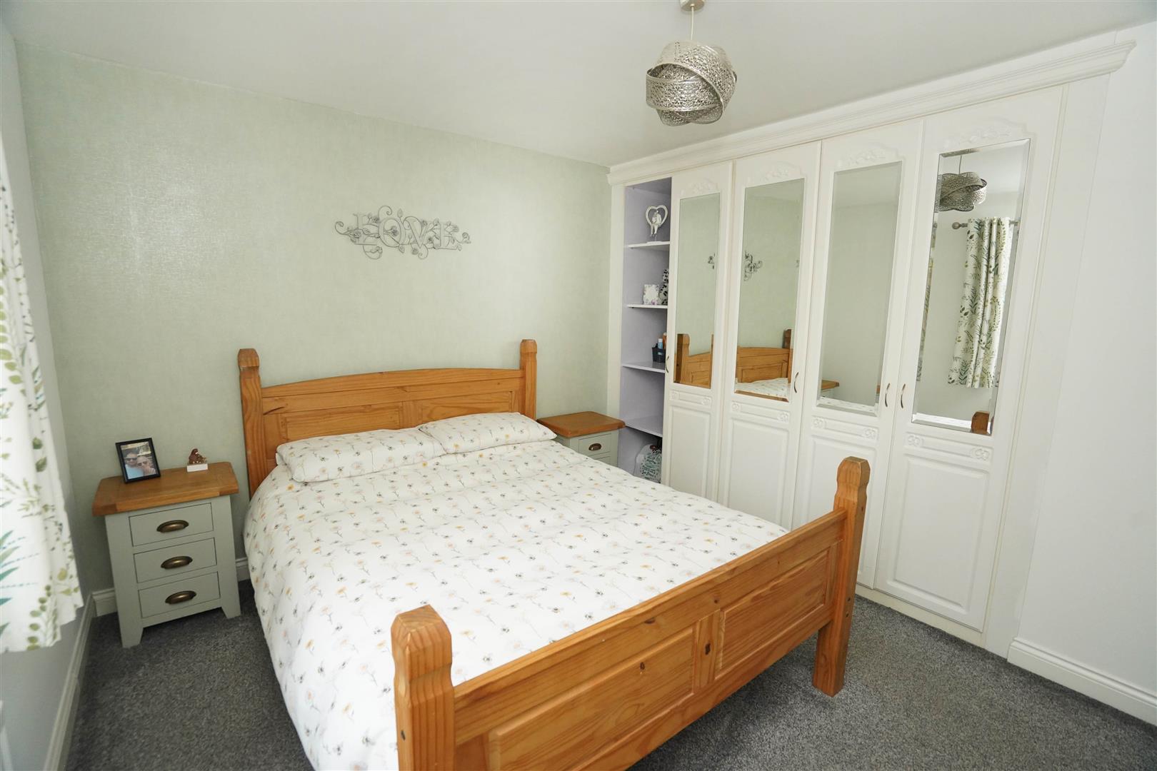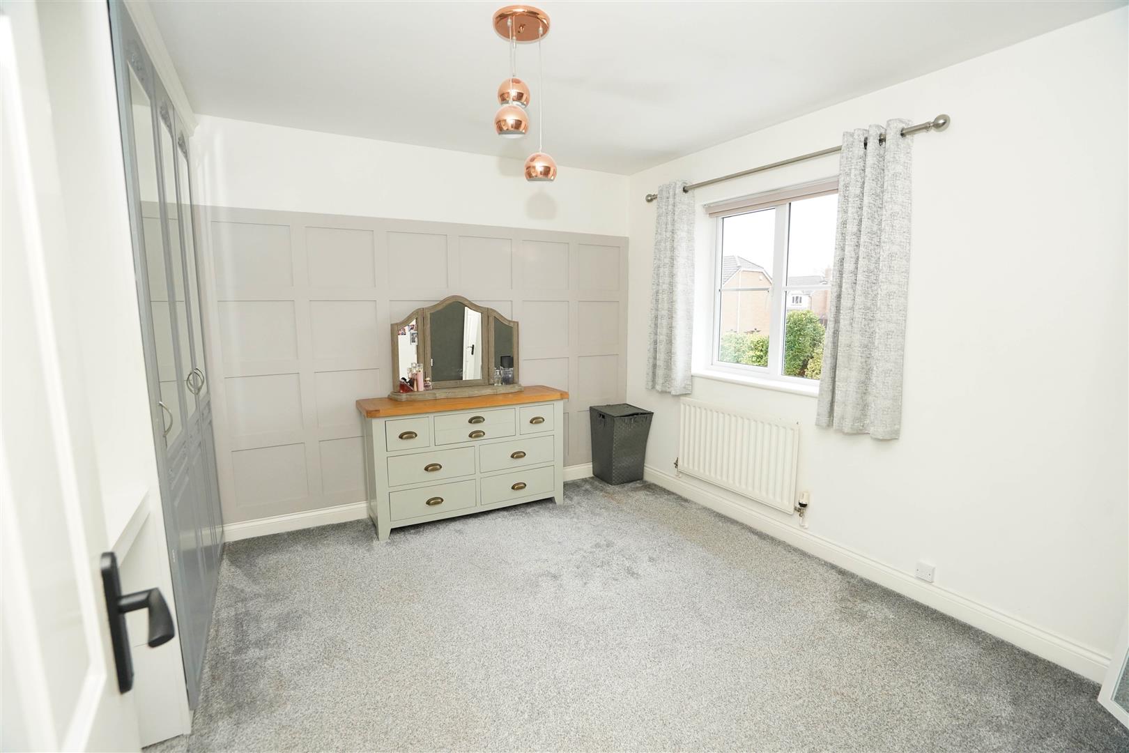 UPVC double glazed window to rear, built-in triple wardrobe(s) with hanging rails and shelving, radiator.