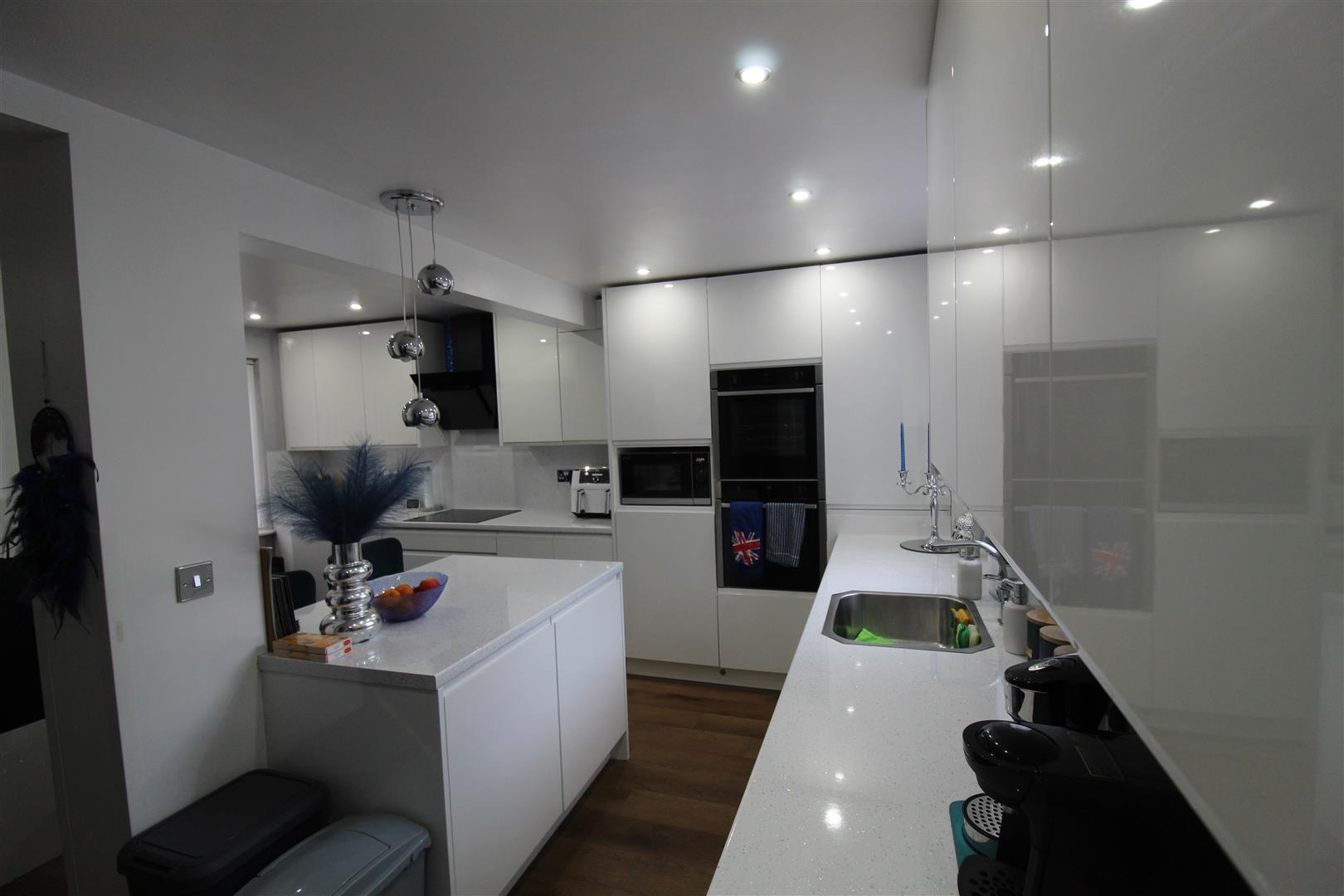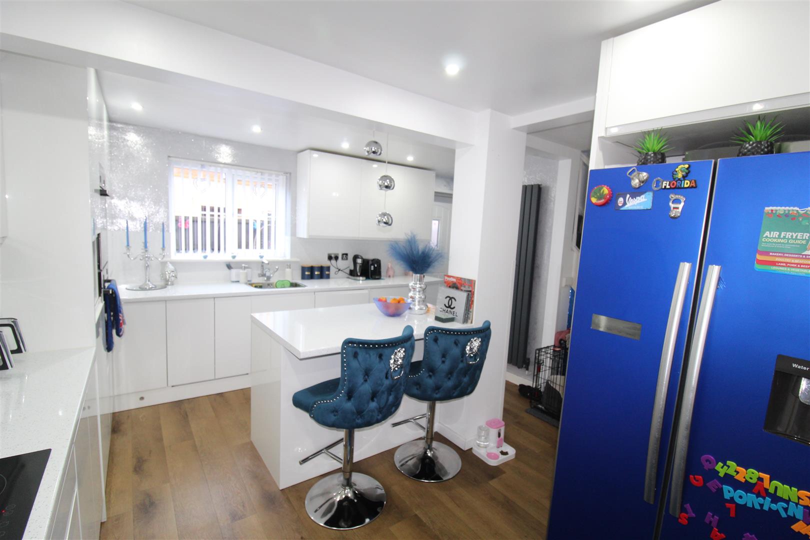 Fitted with a matching range of base and eye level units with worktop space over with drawers and cornice trims, stainless steel sink with mixer tap, space for fridge/freezer, dishwasher, automatic washing machine and tumble dryer, eye level electric fan assisted oven, built-in four ring electric gas hob with extractor hood over, uPVC double glazed window to rear, uPVC double glazed window to front, radiator, stairs, uPVC rock entrance door to rear,