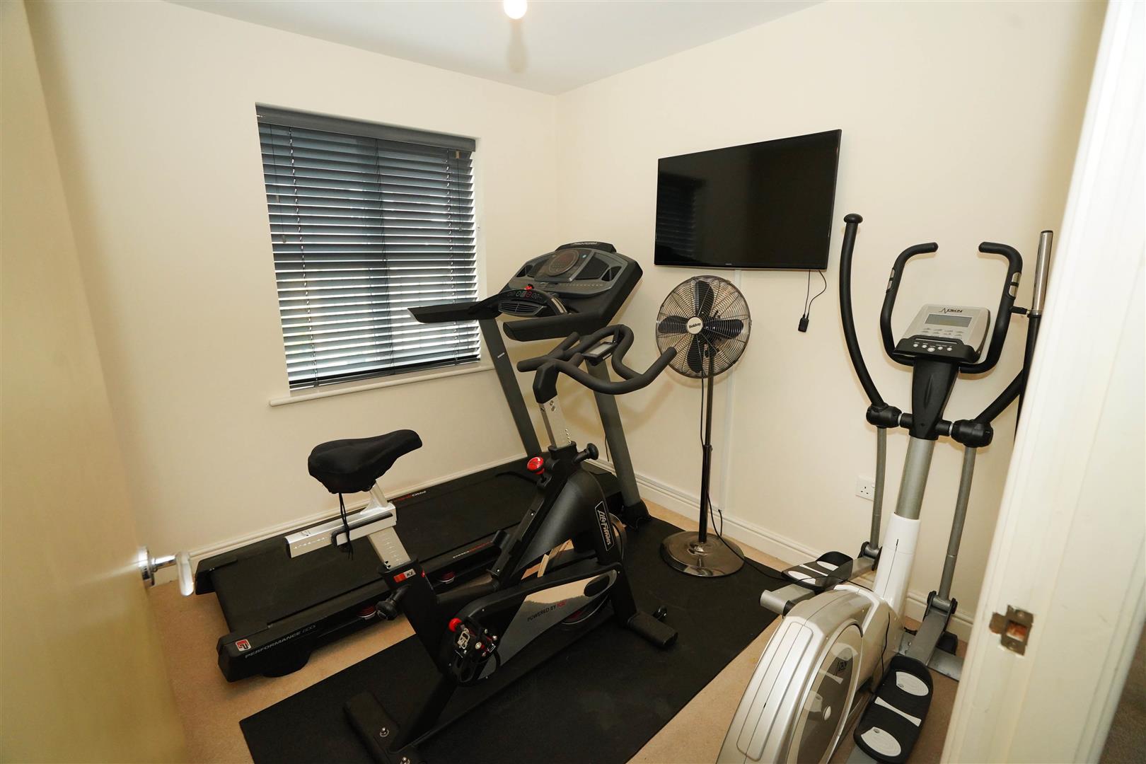 Two uPVC double glazed windows to front, double radiator, coving to ceiling with fitted desk area.
