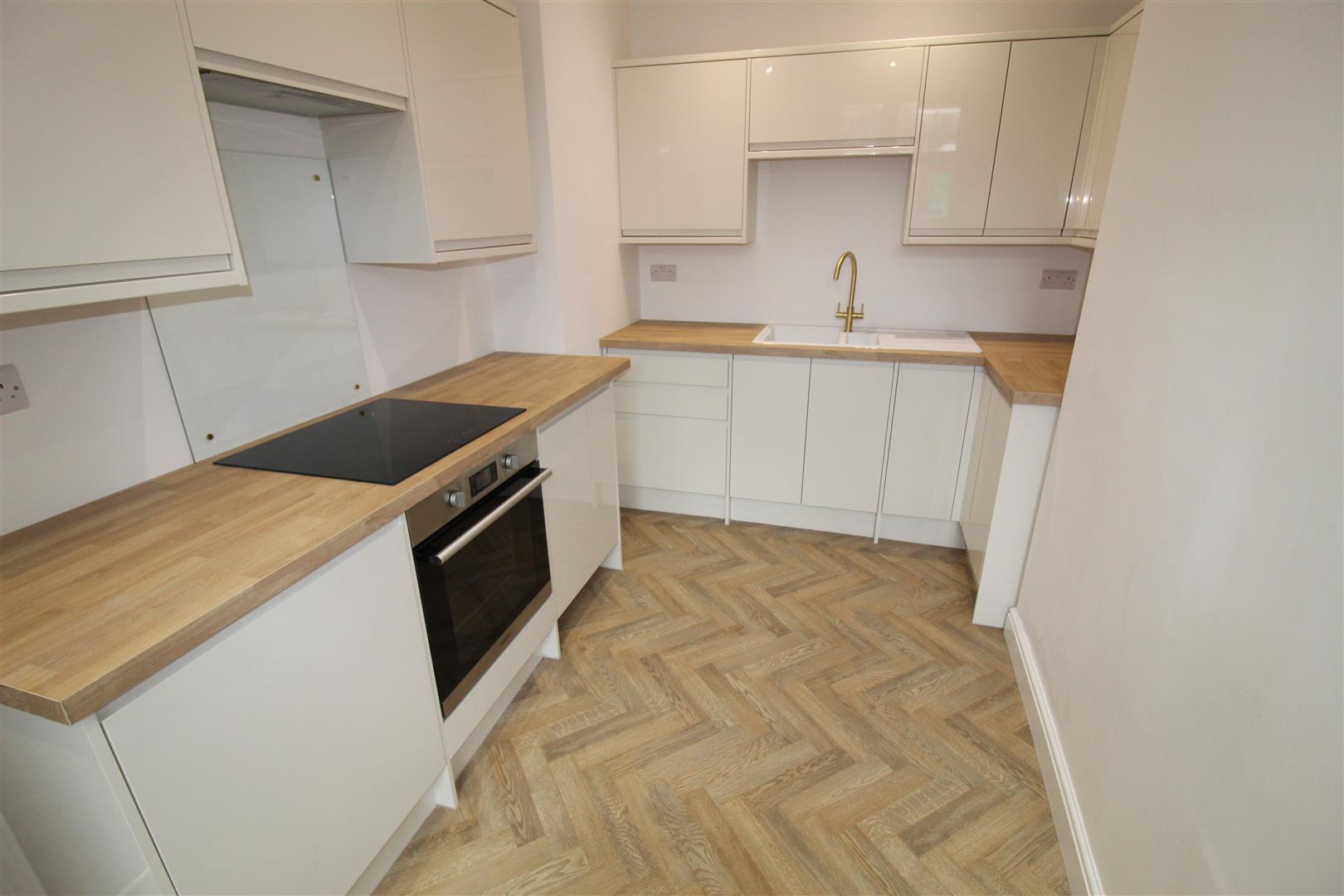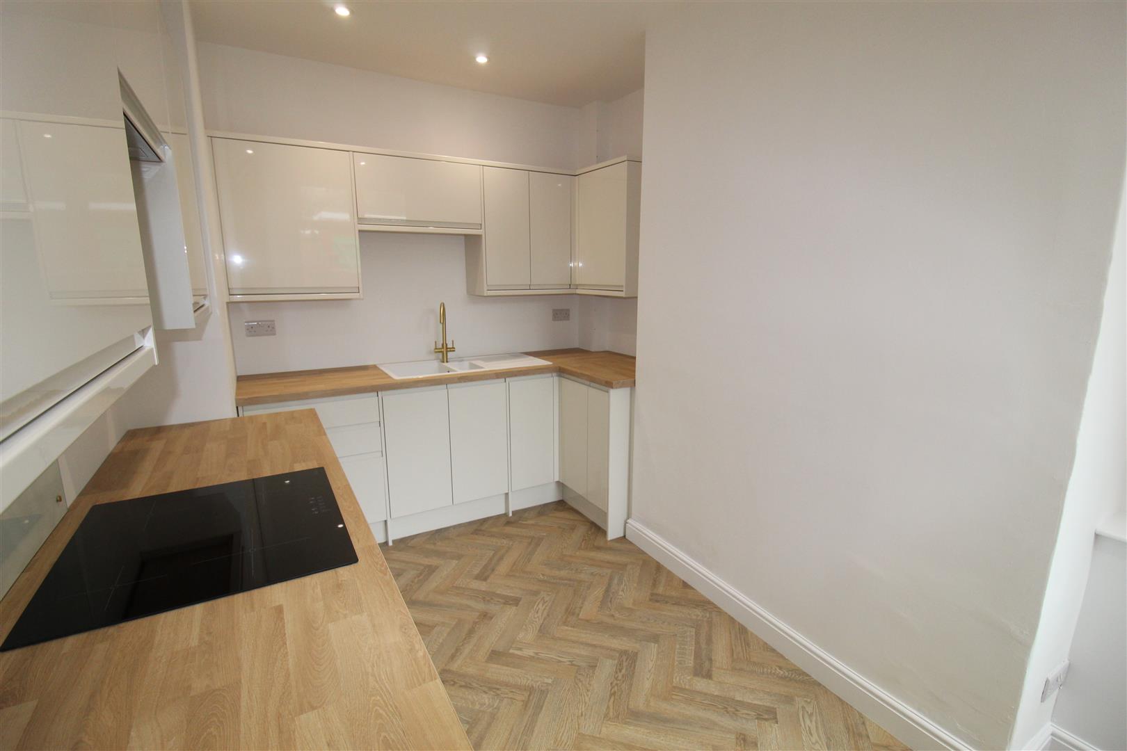 Fitted with a matching range of base and eye level units with worktop space over with drawers and cornice trims, 1+1/2 bowl polycarbonate sink with single drainer and mixer tap, built-in fridge, space for fridge/freezer, built-in electric fan assisted oven, built-in four ring electric hob with extractor hood over, uPVC double glazed window to rear, double radiator.