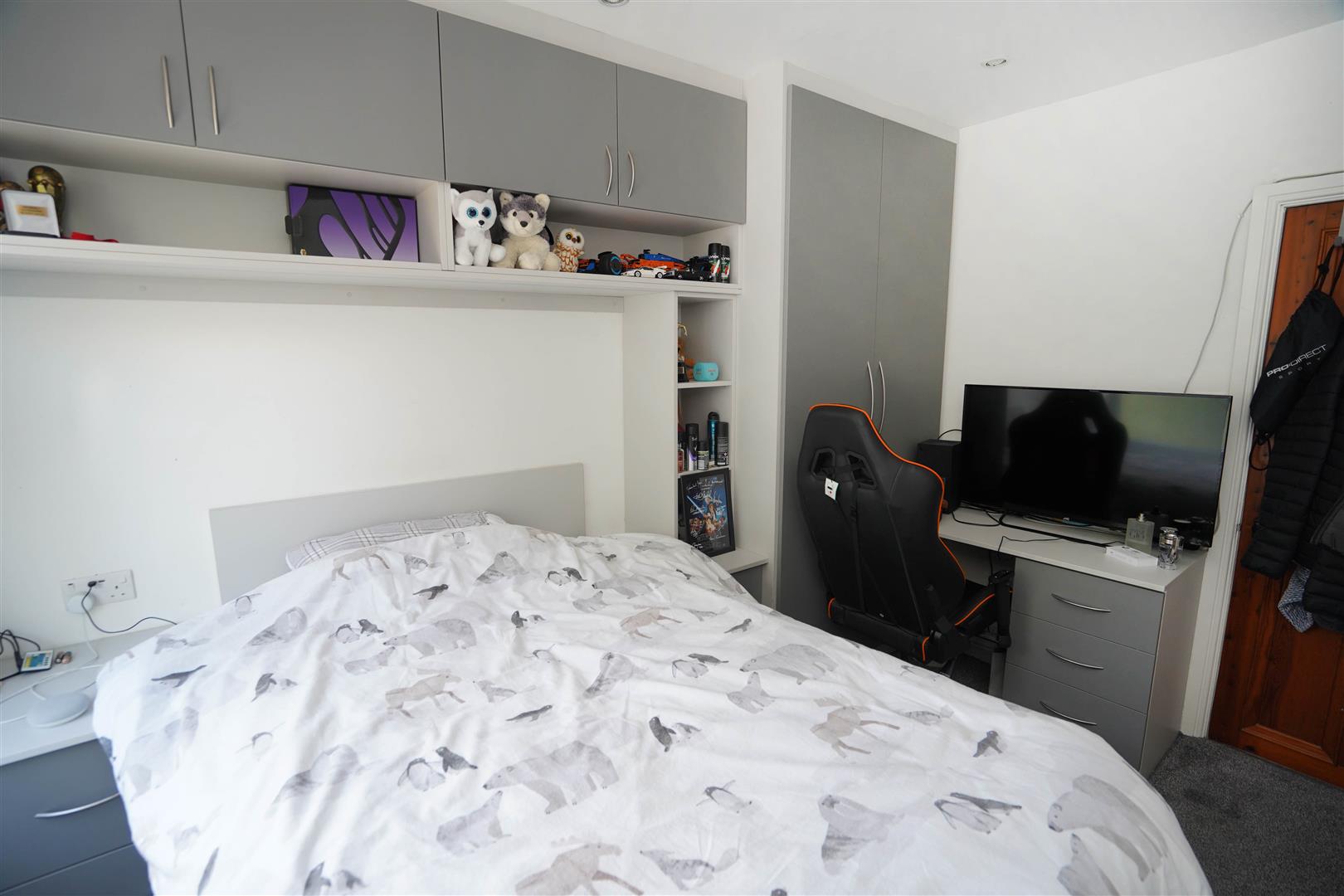 UPVC frosted double glazed window to rear, fitted bedroom suite with a range of wardrobes comprising built-in double wardrobe(s) with hanging rails, shelving, overhead storage and cupboards, fitted matching desk unit with drawers under, radiator.