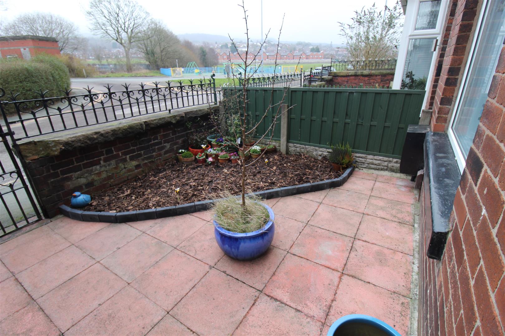 Enclosed small garden to front pathway to entrance door.