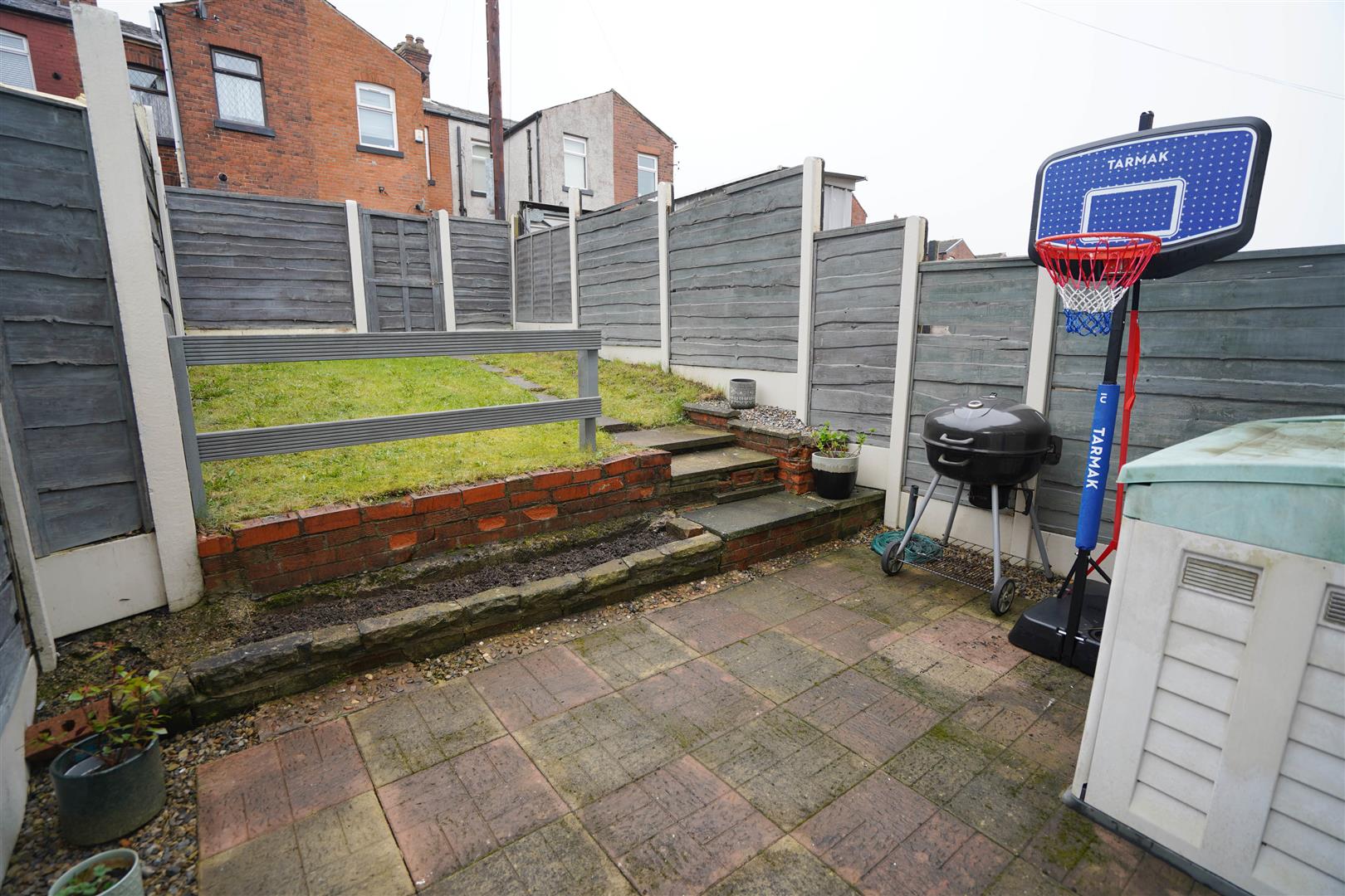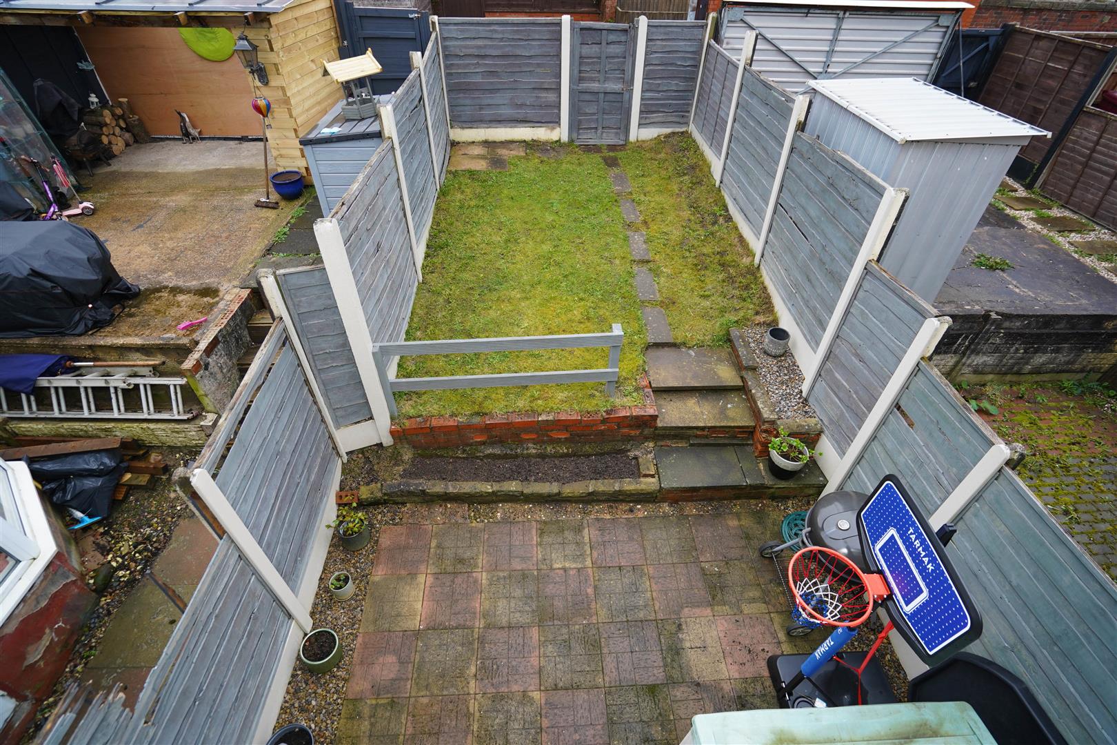 Private rear garden, enclosed by timber fencing to rear and sides, paved pathway, block paved sun patio with lawned area, rear gated access.