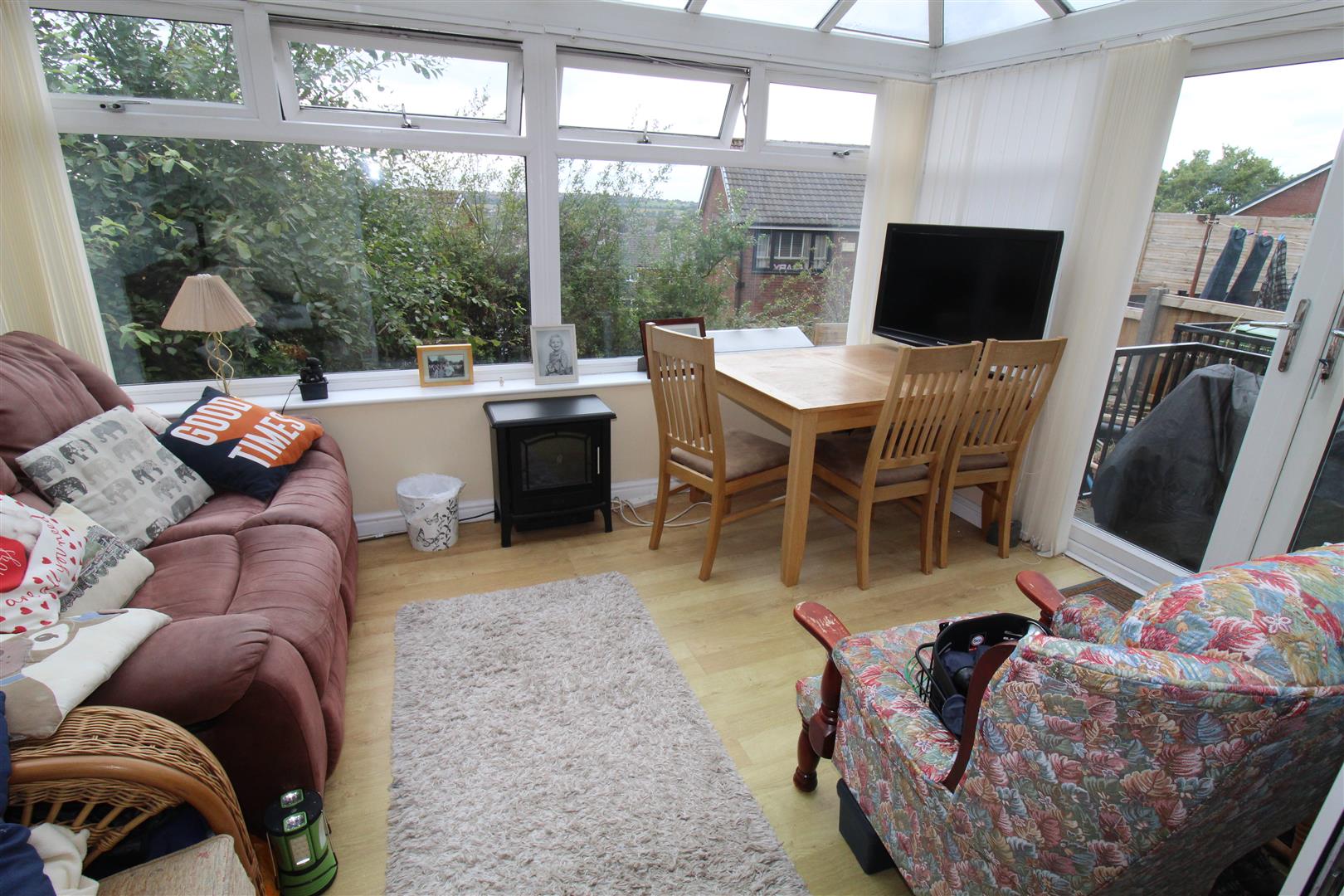 UPVC double glazed window to rear, gas open fire set in feature surround, two double radiators, uPVC double glazed entrance patio door to rear,
