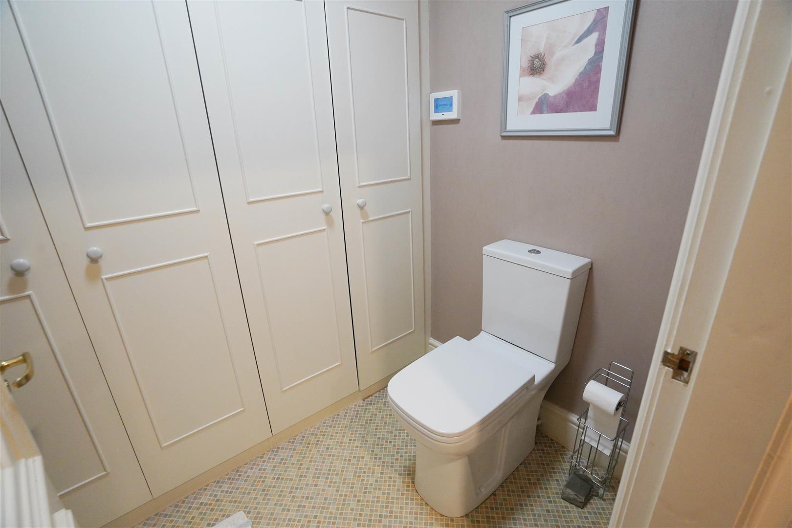 Fitted with three piece modern white suite with comprising, tiled double shower enclosure with rainfall shower over, wash hand basin set on unit with cupboards under and mixer tap, low-level WC and top heated towel rails, extractor fan, wall mounted mirror, shaver point, full height ceramic tiling to all walls, uPVC frosted double glazed window to front, ceramic tiled flooring.