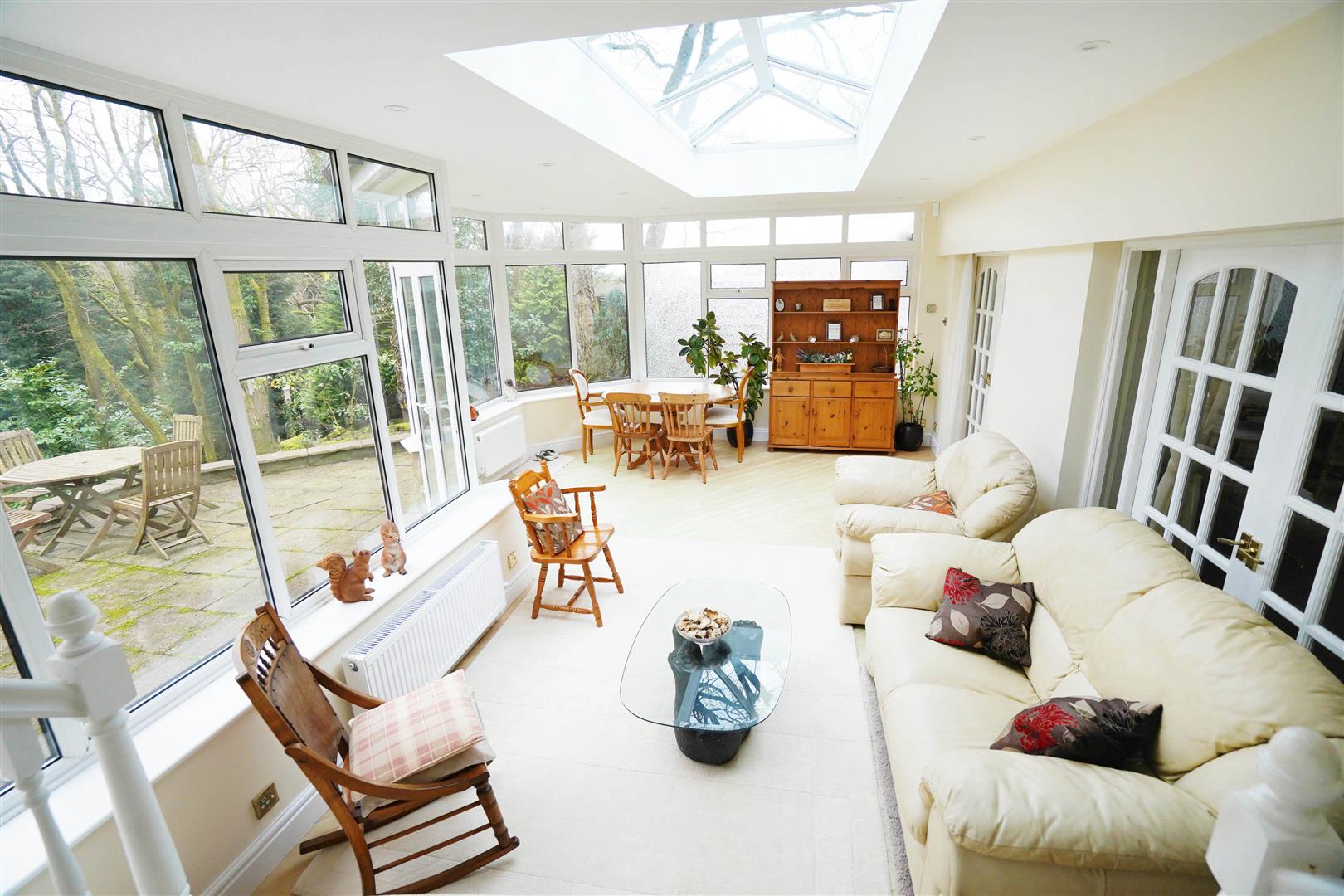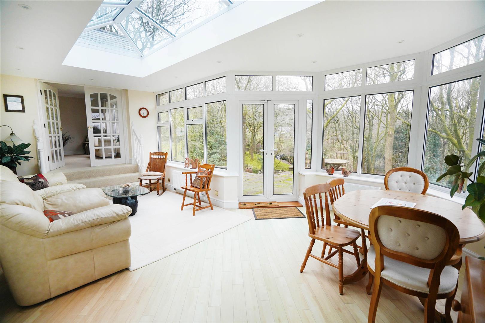 A superb extended and deceptively spacious detached family residence located in the highly sought after area of Foxholes Road and offering fantastic access to the surrounding countryside. The property sits to the front and side of a substantial plot (0.8 acres approx) which includes extensive lawned areas, mature woodland with a stunning pond and stream with waterfall. The internal layout offers deceptively spacious living accommodation (not very apparent from the front view) with flexibility to accommodate a growing family with up to 6 bedrooms although the property is currently used as a 4/5 bedroom with a large office/games room.This property offers 4 reception rooms, large fitted kitchen diner plus utility. Stunning orangery overlooking the rear gardens with pond and waterfall.The large master suite is equipped with a fitted walk in wardrobe and hidden en-suite and dressing room, family bathroom - plus in bedroom two a fitted shower and sink. The games room offers potential to be split into separate bedrooms if required but equally provides flexibility to the living space. In summary, all the rooms are of generous proportions. Outside there are parking provisions for up to 6 cars plus a large double garage. The space occupied by the property affords opportunity to extend further sideways and possibly backwards subject to planning consent. Ideally located for access to Rivington countryside, this fabulous property must be viewed to fully appreciate the size and location on offer