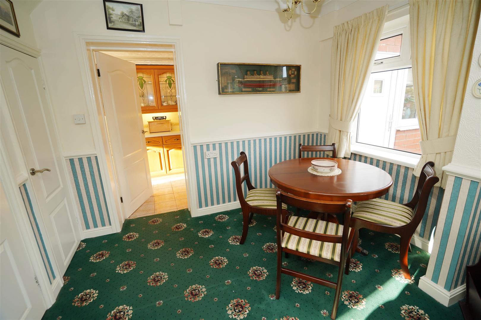 UPVC double glazed window to rear, dado rail, coving to ceiling, open plan, door to built-in under-stairs storage cupboard,