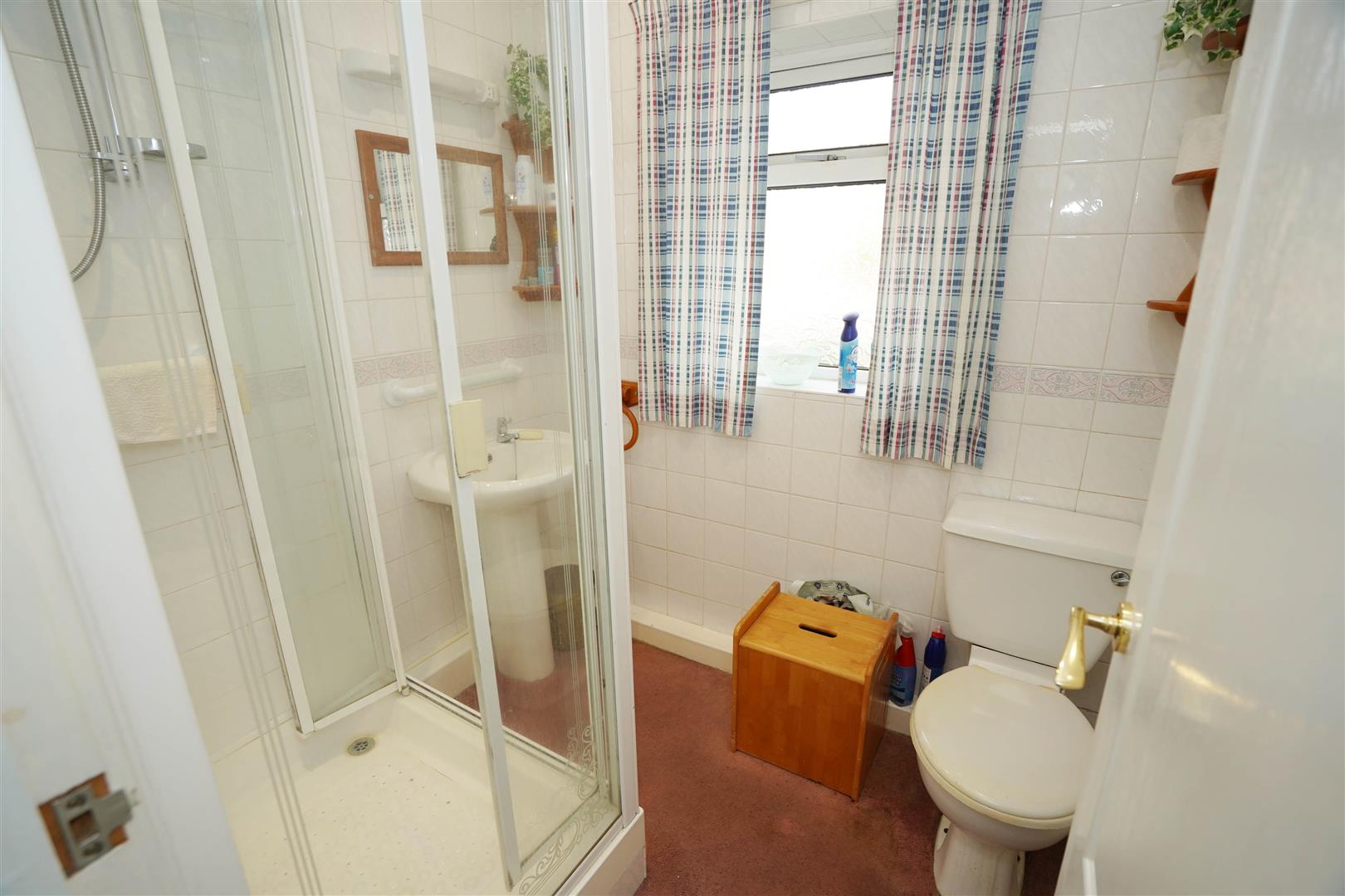Fitted with three piece white suite comprising tiled shower enclosure with electric shower over, pedestal wash hand basin, low-level WC and full height ceramic tiling to all walls, heated towel rail, extractor fan, uPVC frosted double glazed window to rear.