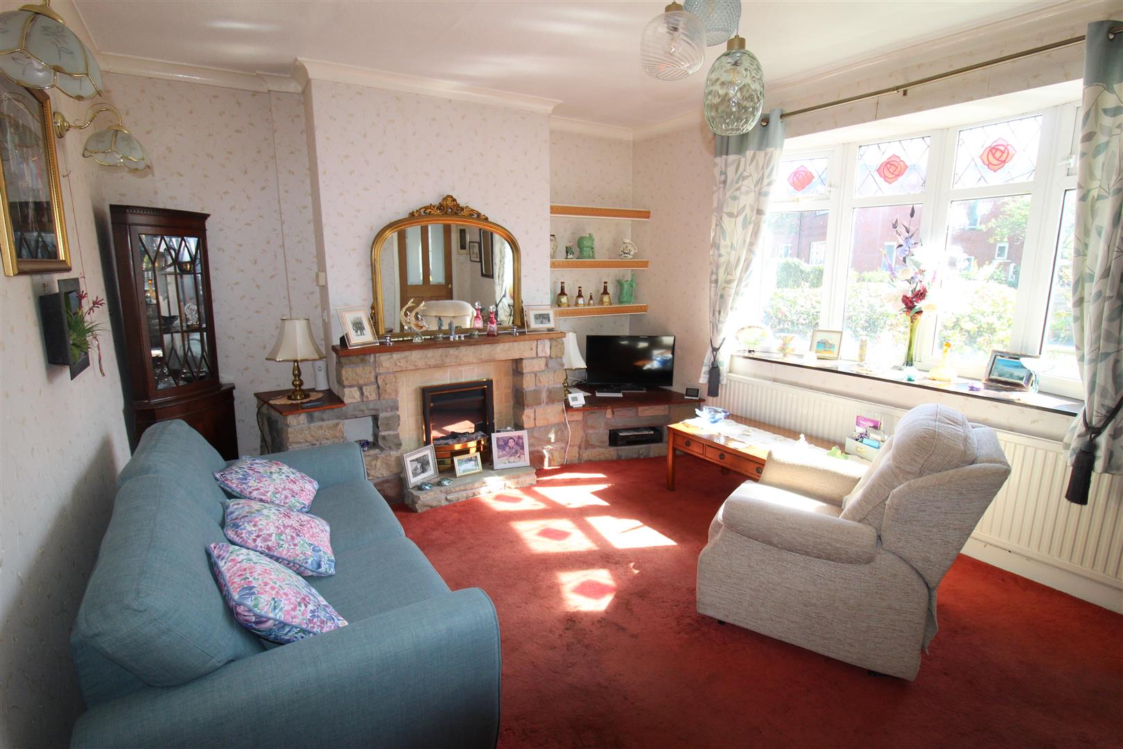 UPVC double glazed window to front, log effect electric fire with set in and stone built surround, radiator: