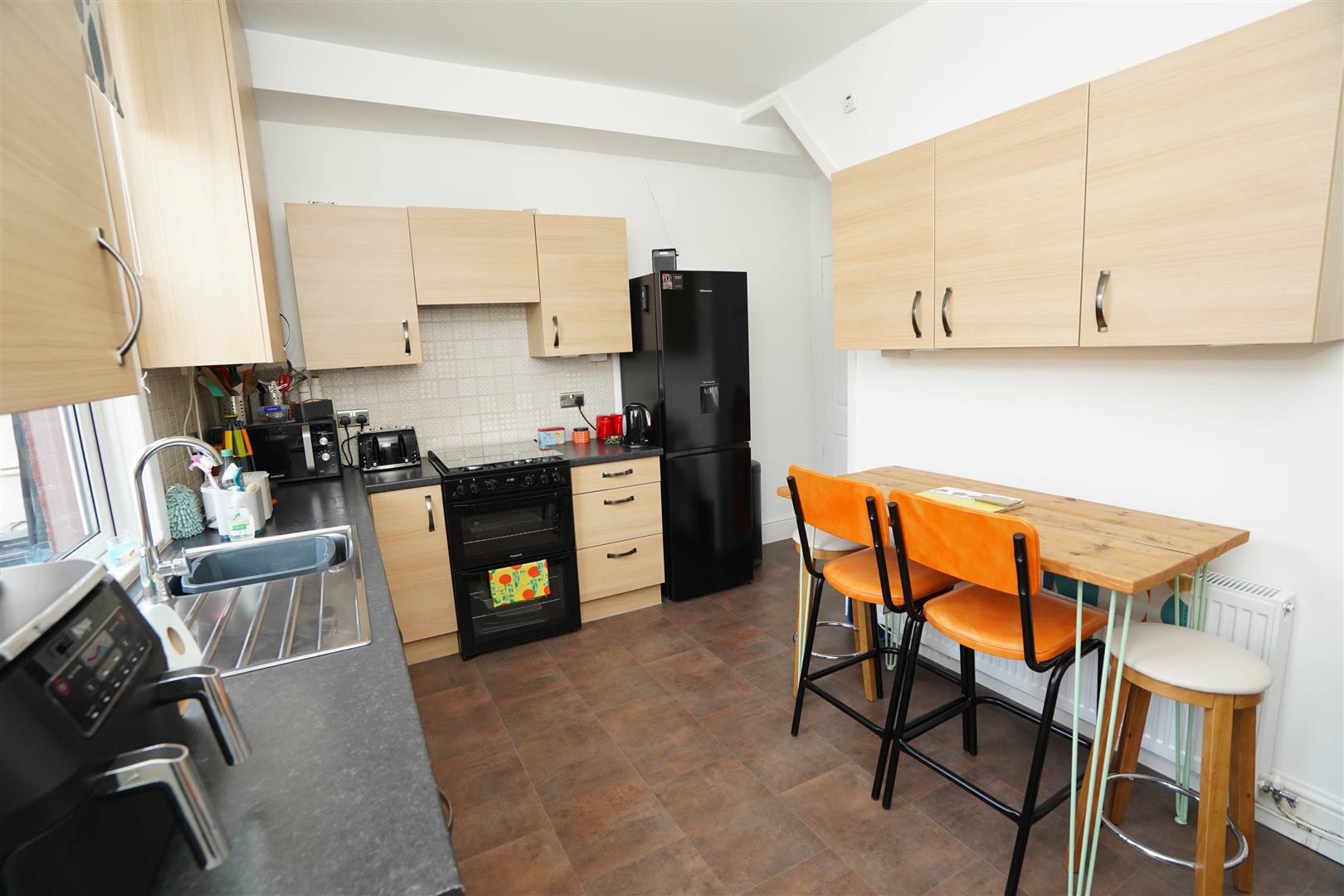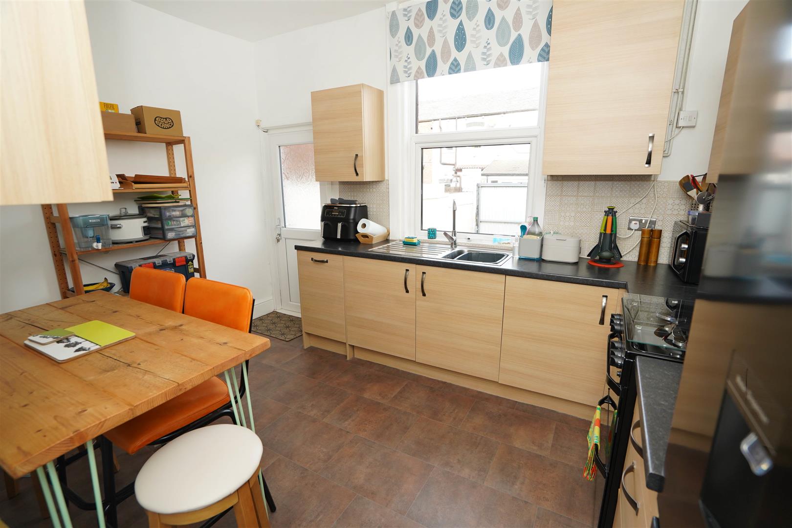 Fitted with a matching range of base and eye level units with contrasting round edged worktops, stainless steel sink unit with single drainer and mixer tap with tiled splashbacks, wall mounted concealed gas combination serving heating system and domestic hot water, integrated slimline dishwasher and washing machine, space for fridge/freezer, gas and electric points for cooker with extractor hood, uPVC double glazed window to rear, built-in under-stairs storage cupboard, Luxury vinyl flooring, carpeted stairs to first floor landing, uPVC double glazed door to rear, door.