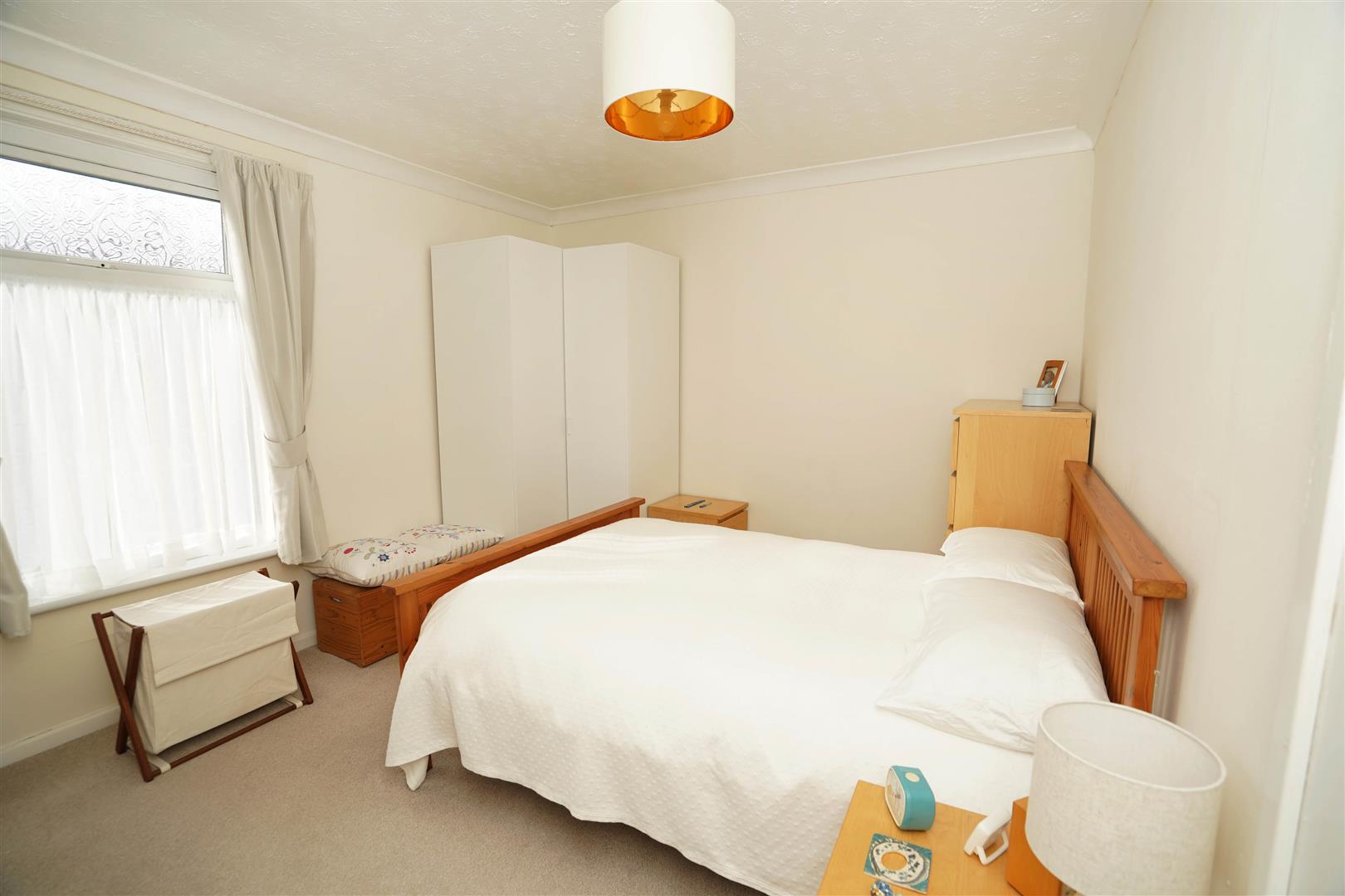 Fitted with three piece white suite comprising panelled bath with shower over and glass screen, pedestal wash hand basin with mixer tap and low-level WC, ceramic tiling to three walls, heated towel rail, extractor fan, wall mounted mirror, shaver point and light, uPVC frosted double glazed window to rear, vinyl flooring.