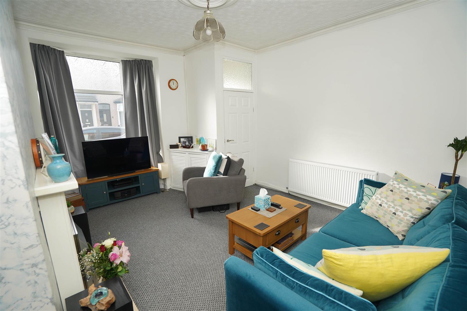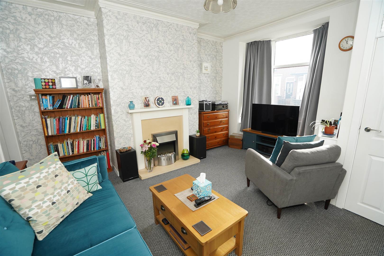 UPVC double glazed box window to front, living flame effect electric fire set in timber surround and marble effect inset and hearth, radiator, coving to ceiling, door to: