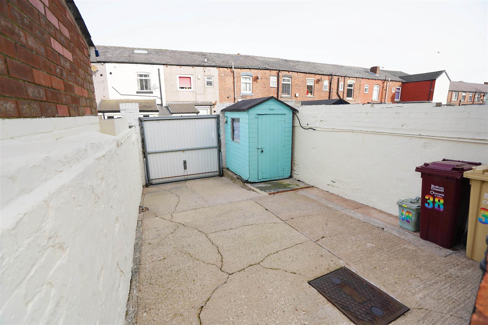 Rear courtyard, enclosed by brick wall to rear and sides, concrete sun patio, timber garden shed with power connected, up and over door giving rear vehicular access.