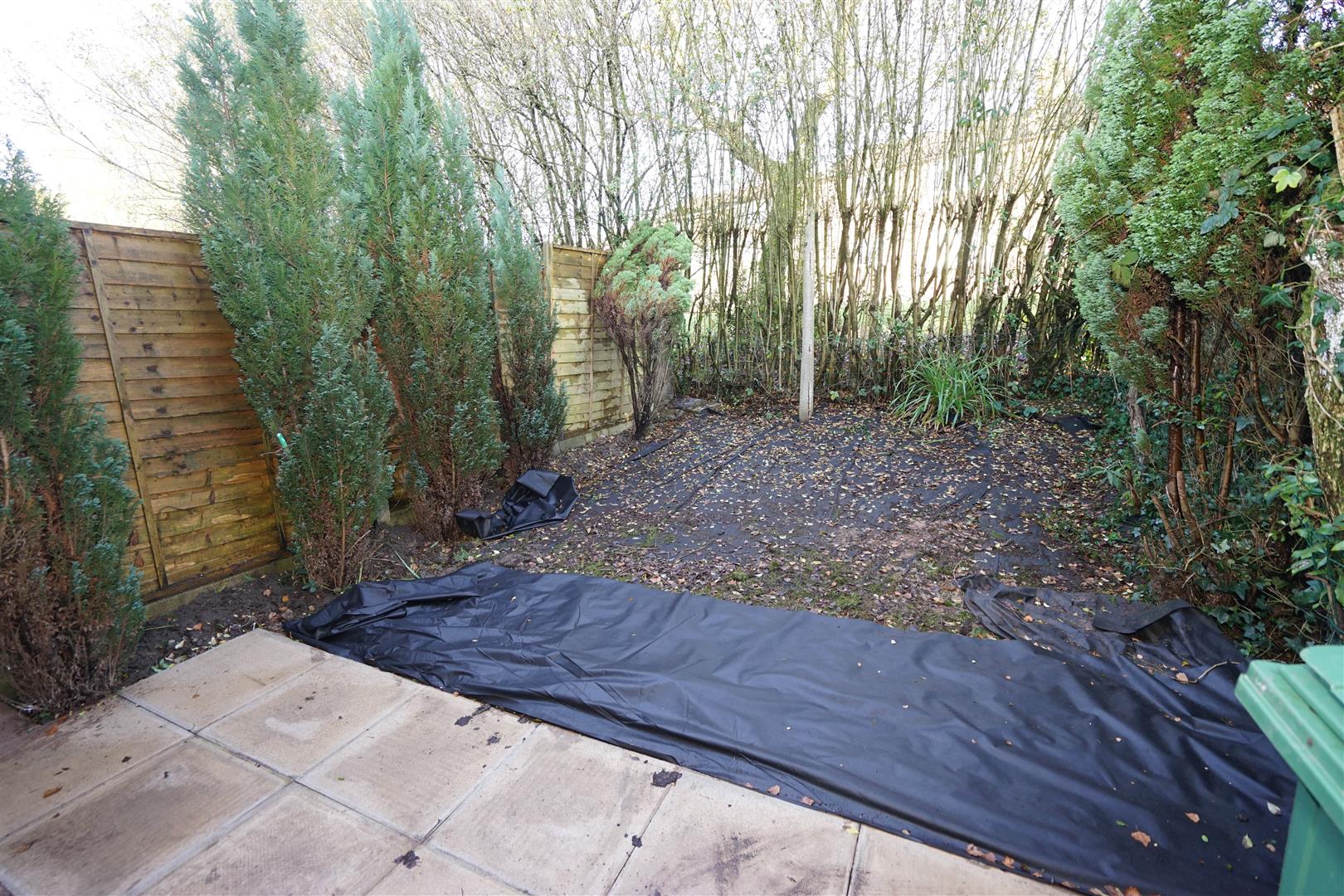 Private rear garden, enclosed by timber fencing and mature hedge to rear and sides, paved sun patio with mature flower and shrub borders.