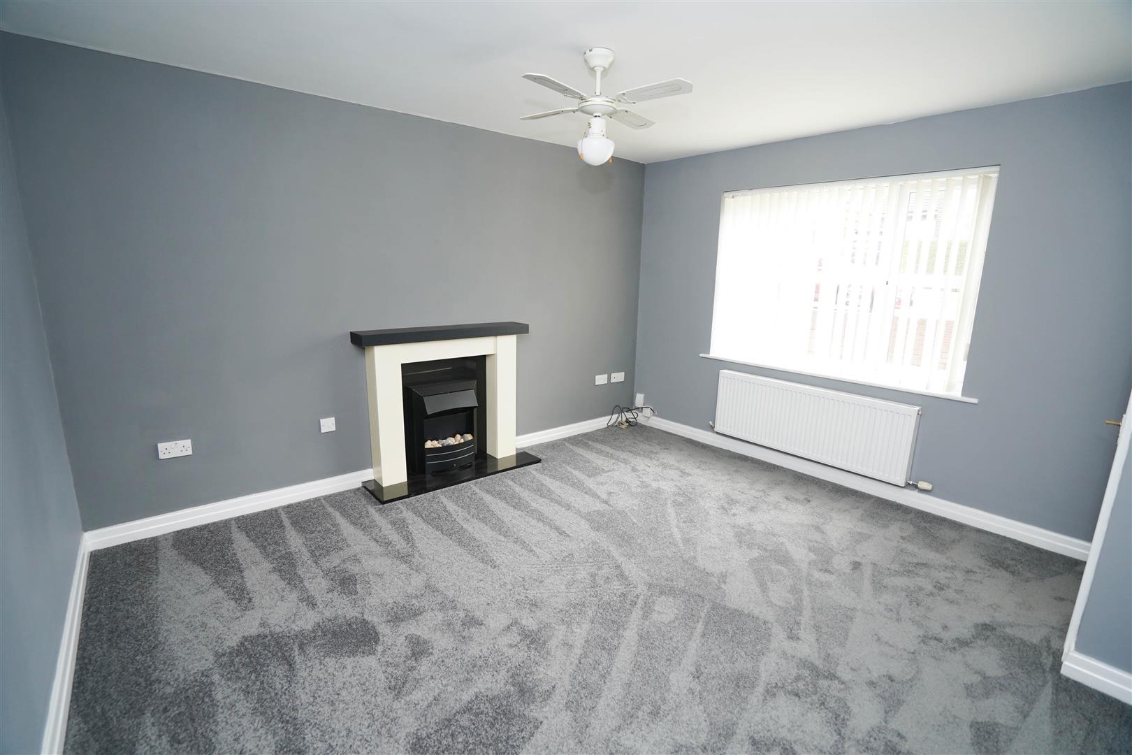 UPVC double glazed window to front, living flame effect electric fire set in ornate surround, double radiator, double door, door to: