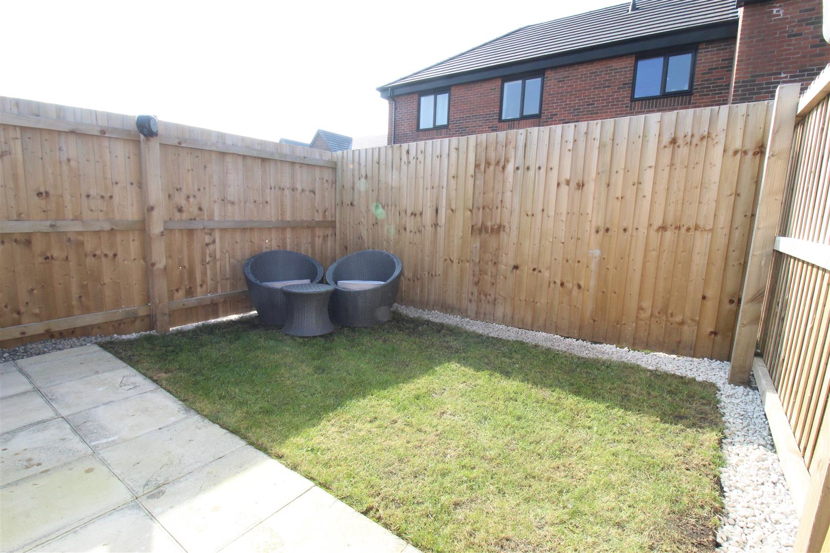 Enclosed small garden area laid to lawn.