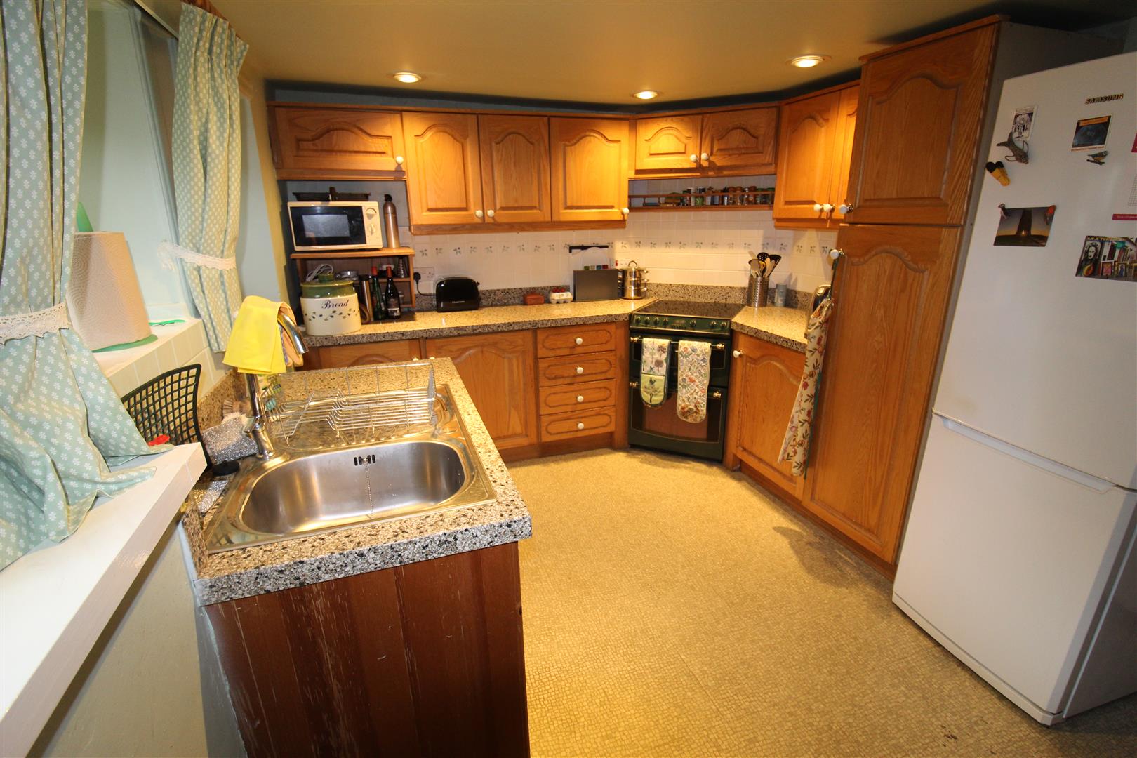 Fitted with a matching range of base and eye level units with worktop space over with underlighting, drawers and cornice trims, stainless steel sink unit with mixer tap, plumbing for dishwasher, space for fridge/freezer, electric oven, electric hob, two uPVC double glazed windows to rear, radiator,: