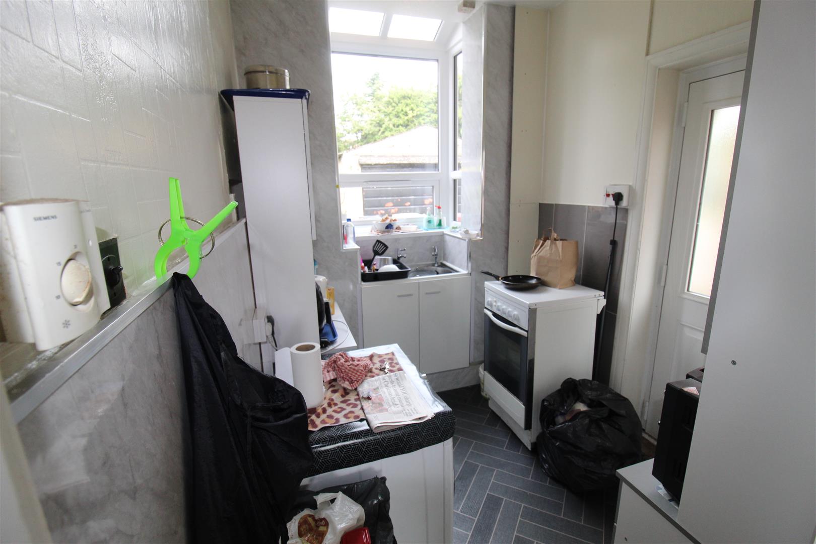 Fitted with a range of base and eye level units with drawers and worktop space over, stainless steel sink, plumbing for automatic washing machine, four ring gas hob, uPVC double glazed window to rear.