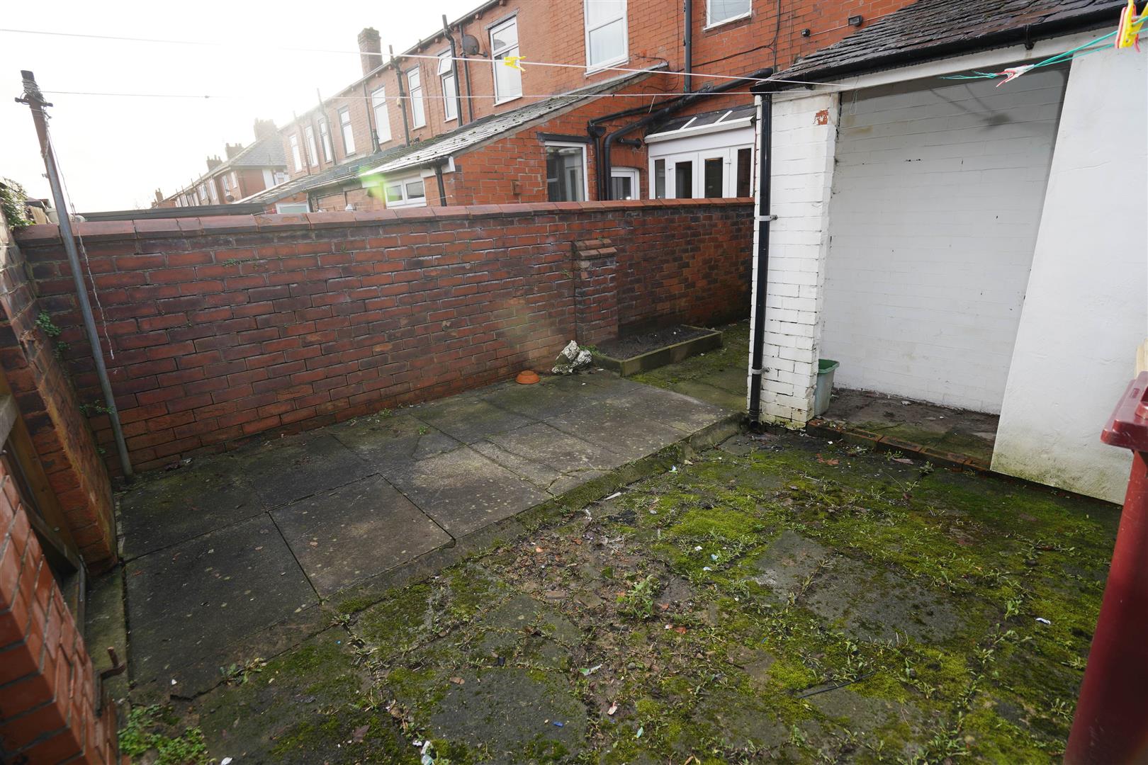 Rear courtyard, enclosed by brick wall to rear and sides, paved hard standing, rear gated access.