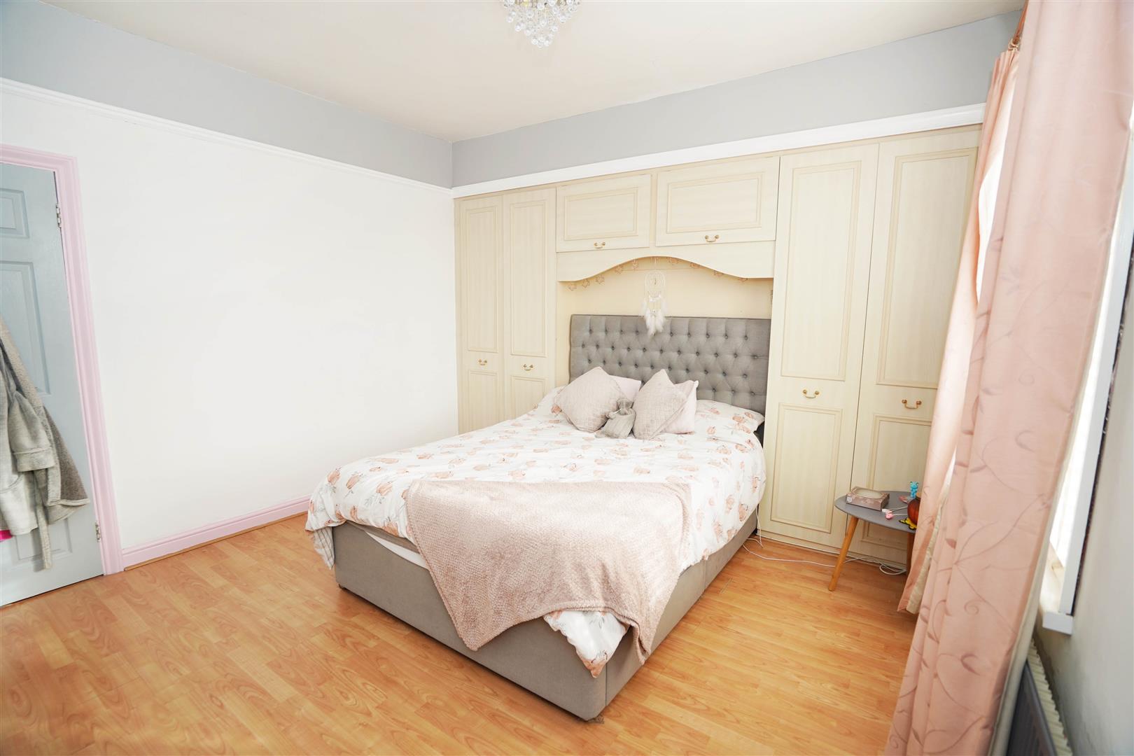 UPVC double glazed window to front, fitted bedroom suite with a range of wardrobes comprising two fitted double wardrobes with hanging rails, shelving, overhead storage and cupboards, fitted matching dressing table and drawers, radiator, laminate flooring, door to: