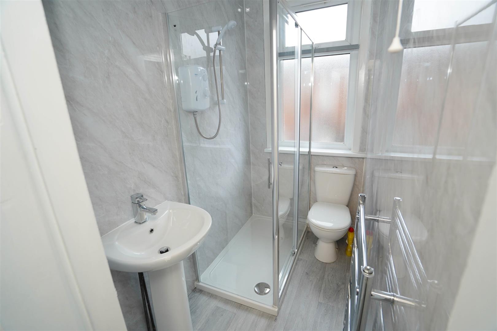 Recently refitted with three modern white suite comprising double shower enclosure with electric shower over, pedestal wash hand basin with mixer tap, low-level WC and full height wet wall panelling to all walls, heated towel rail, extractor fan, uPVC frosted double glazed window to rear, vinyl flooring.