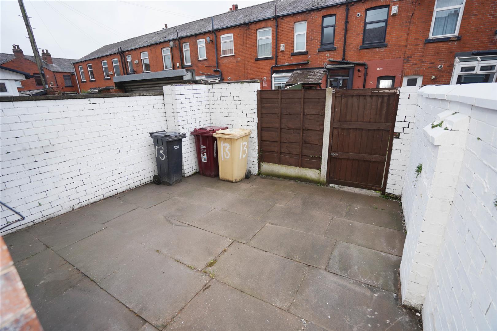 Rear garden, enclosed by brick wall and timber fencing to rear and sides, rear gated access, paved sun patio.