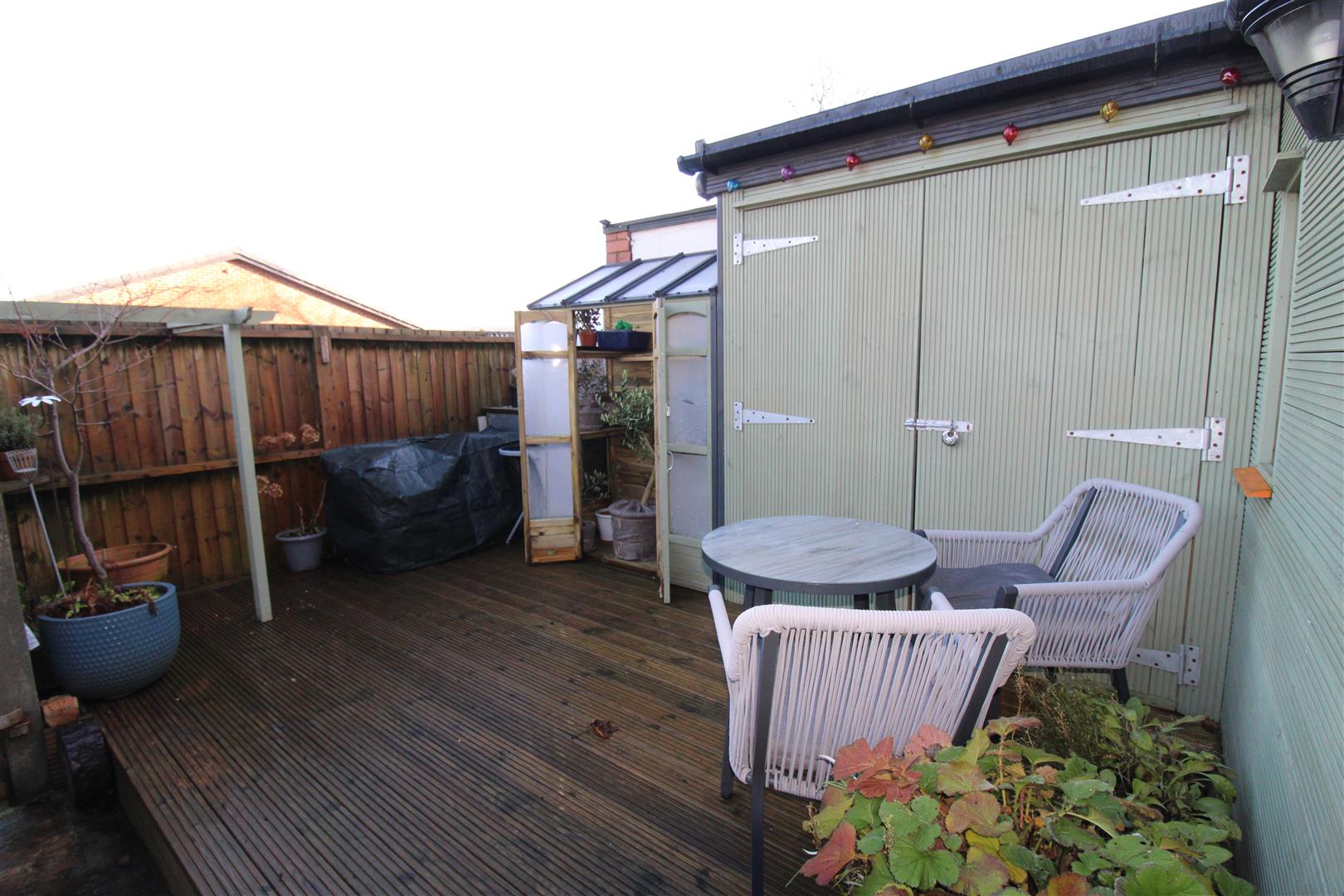 Rear courtyard with decking area and far reaching view over Rivington and Winter Hill