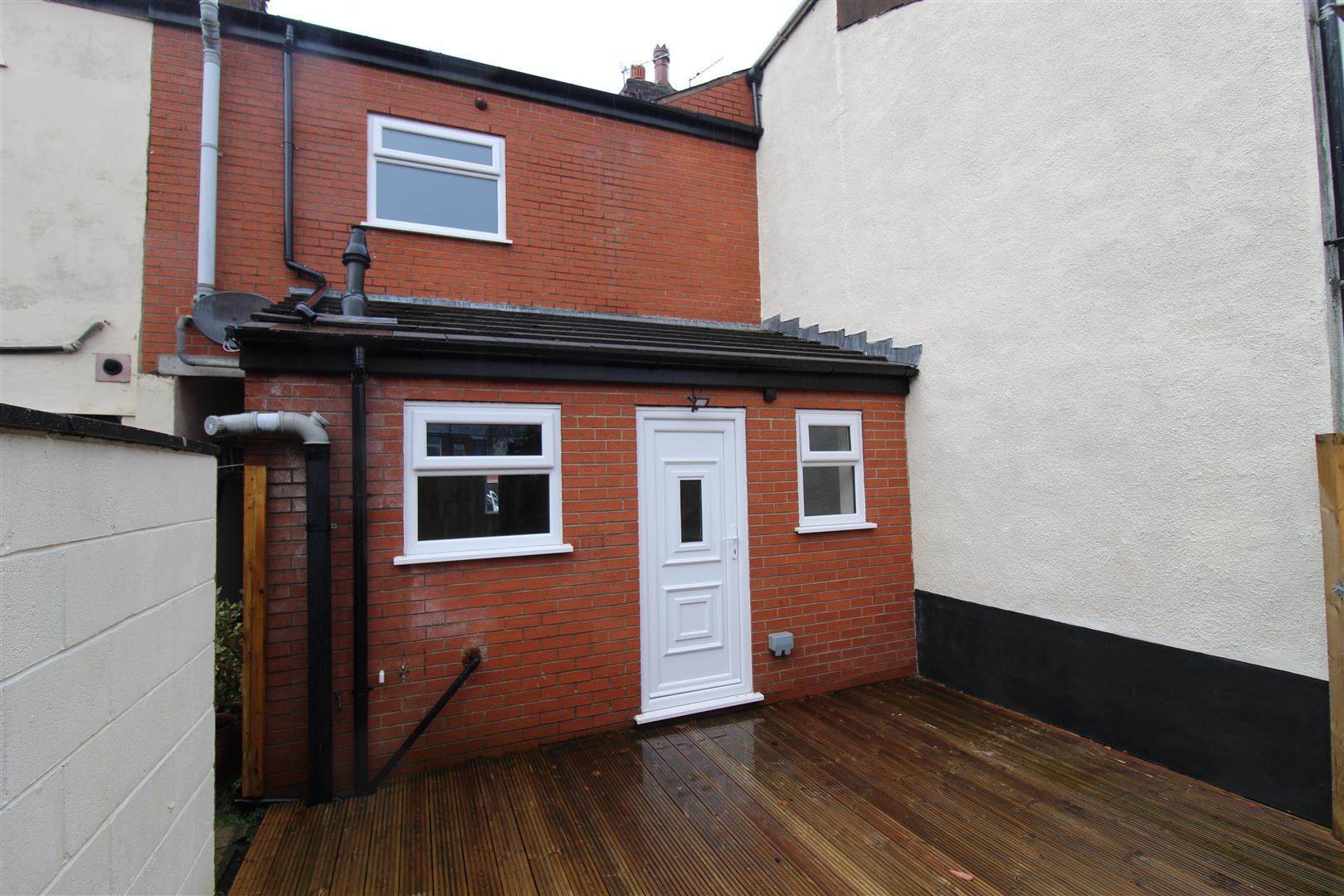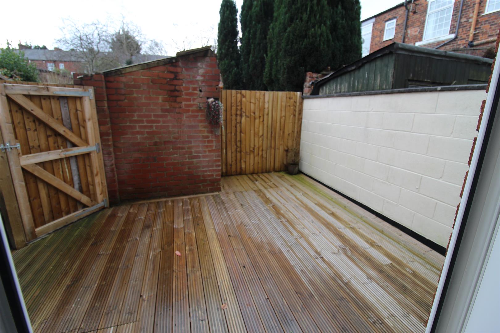 Fully decked enclosed rear courtyard area with space for seating and dining area.