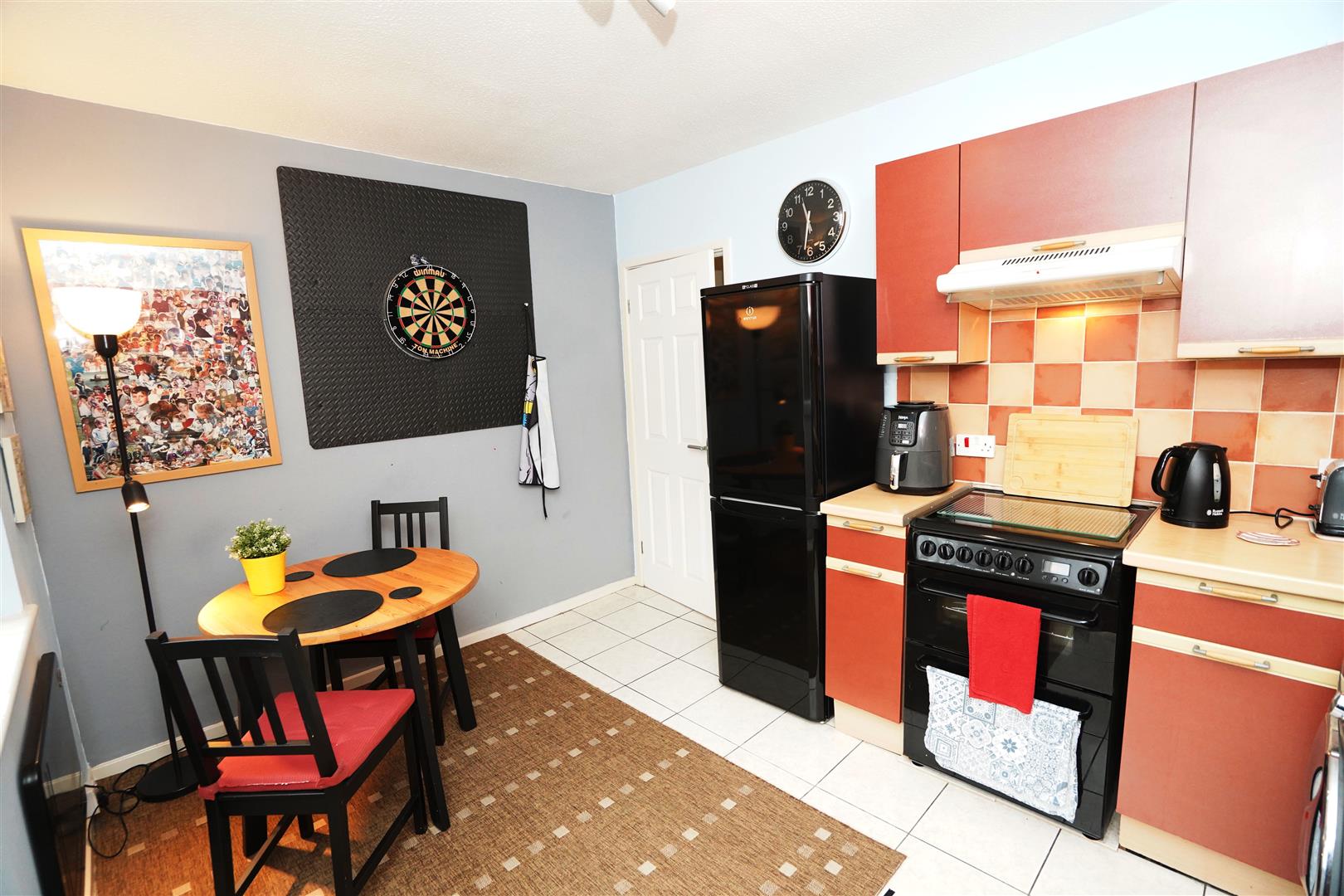 Fitted with a matching range of base and eye level units with contrasting round edged worktops, stainless steel sink unit with single drainer and mixer tap with tiled splashbacks, plumbing for washing machine, space for fridge/freezer, electric point for cooker, two uPVC double glazed windows to rear, electric panel heater, ceramic tiled flooring, uPVC double glazed door to garden.