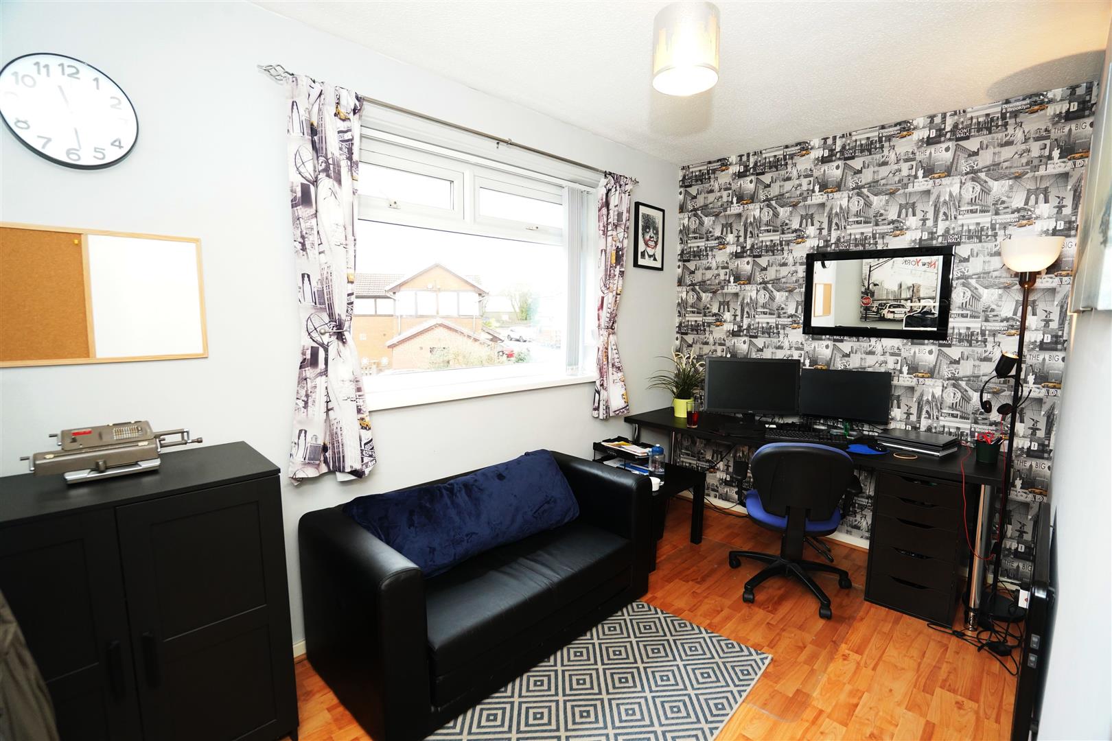 UPVC double glazed window to front, wall mounted electric panel heater, laminate flooring.