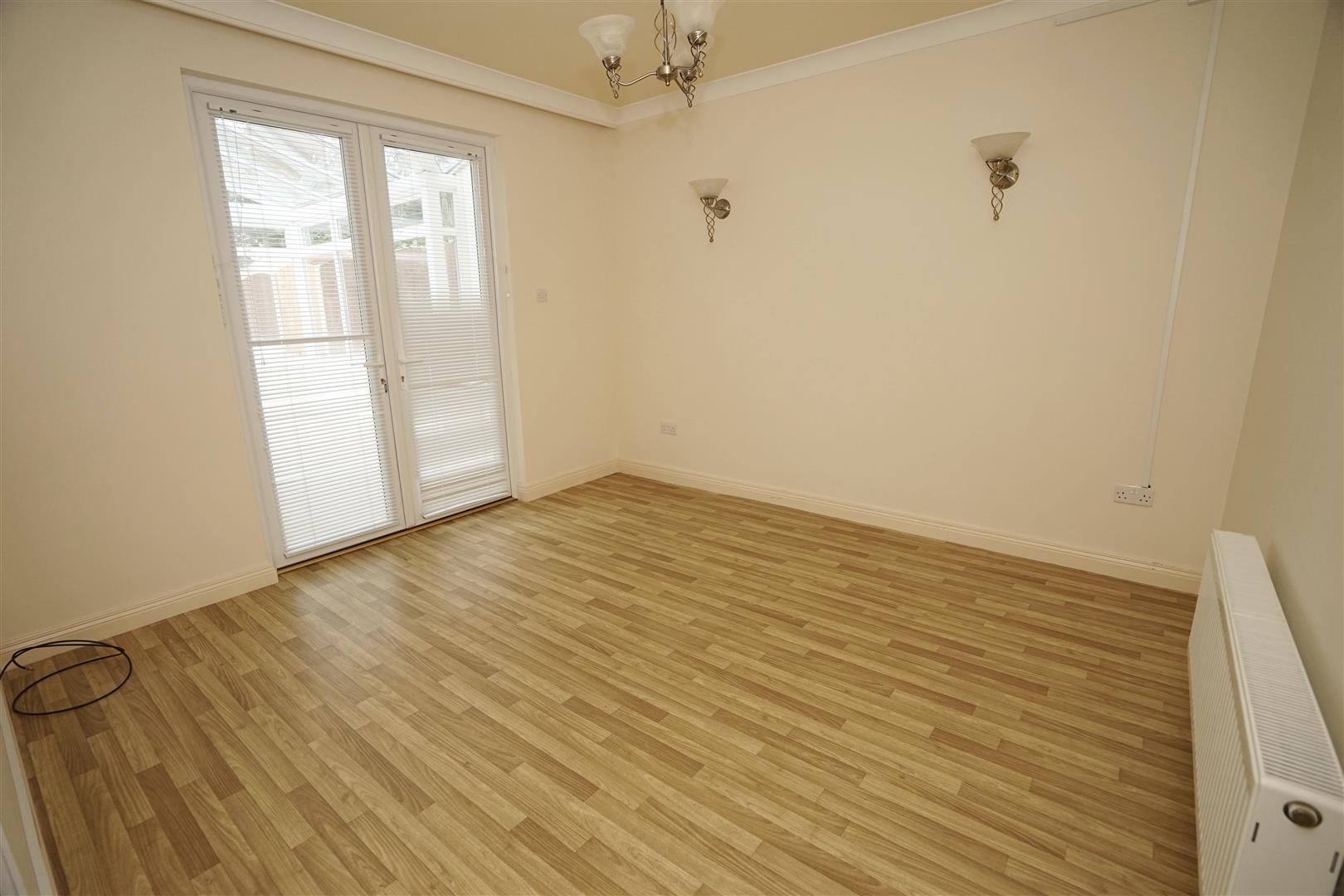 Double radiator, vinyl flooring, three wall lights, coving to ceiling, uPVC double glazed french double door, door to: