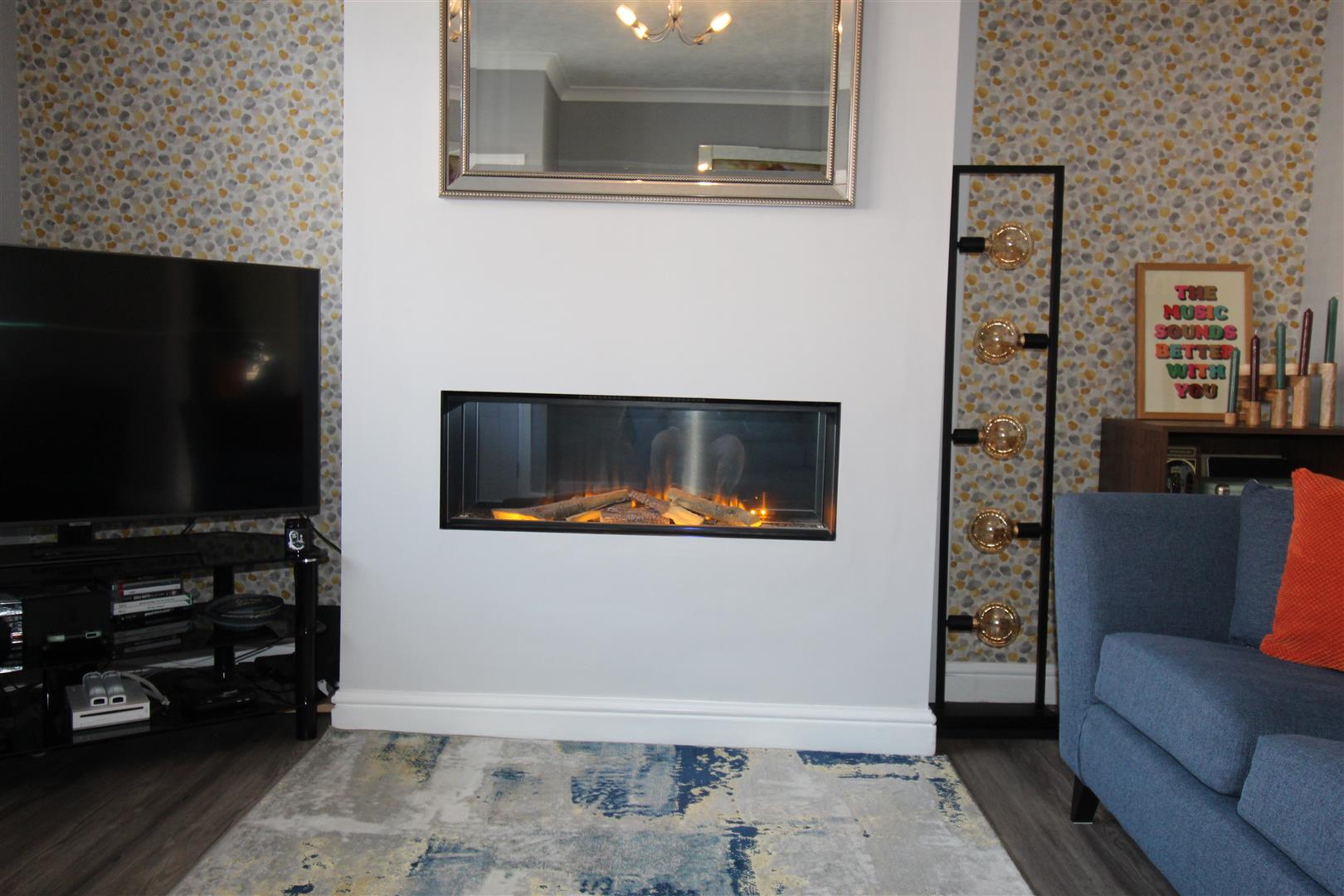 UPVC double glazed window to front, in-set log effect electric fire, double radiator: