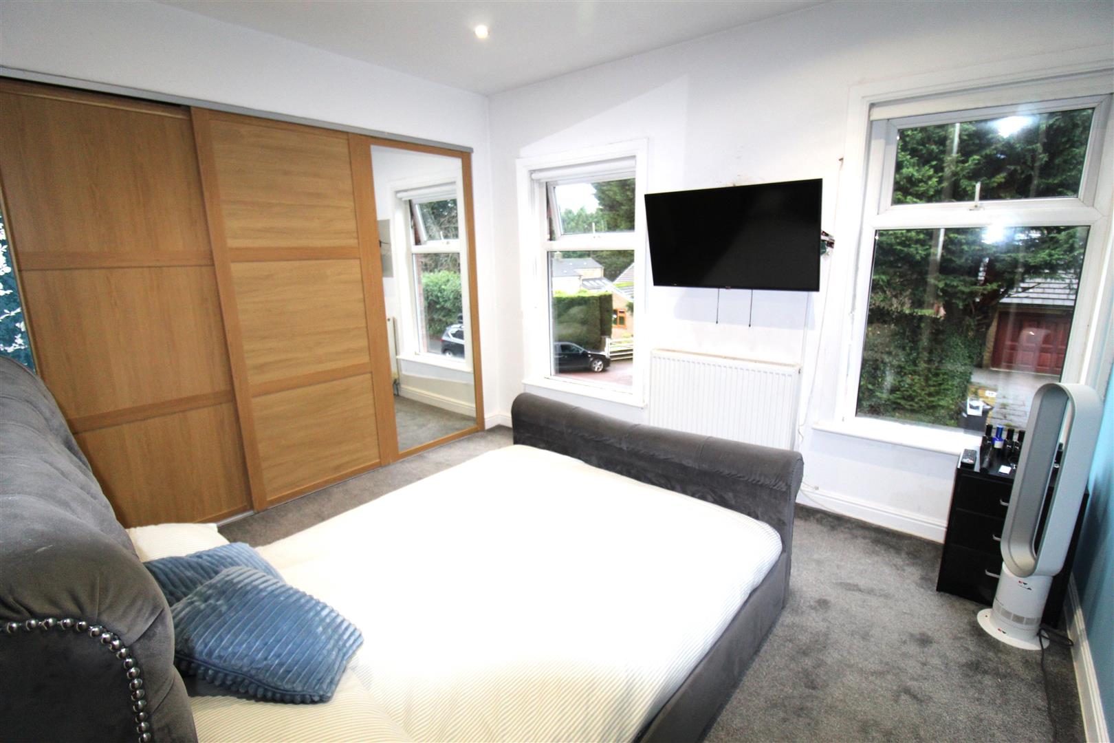 Two double glazed windows to front, Storage cupboard, built-in wardrobe(s) with part mirrored sliding door, double radiator, two sliding doors,