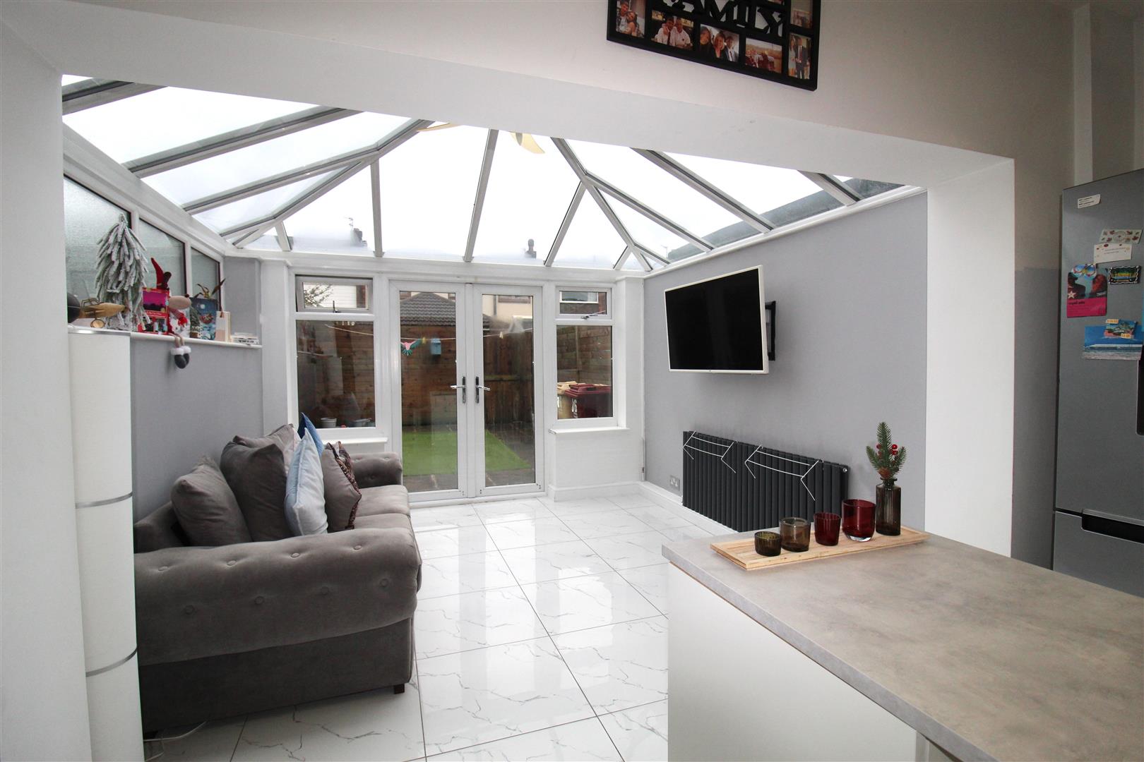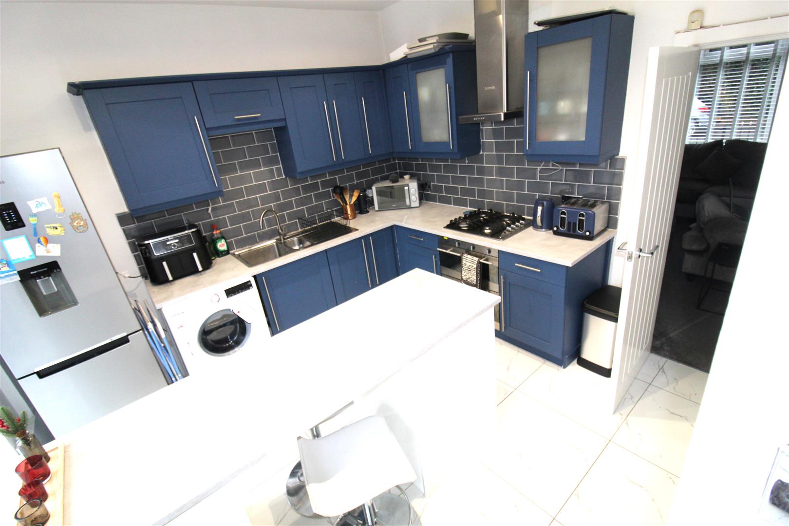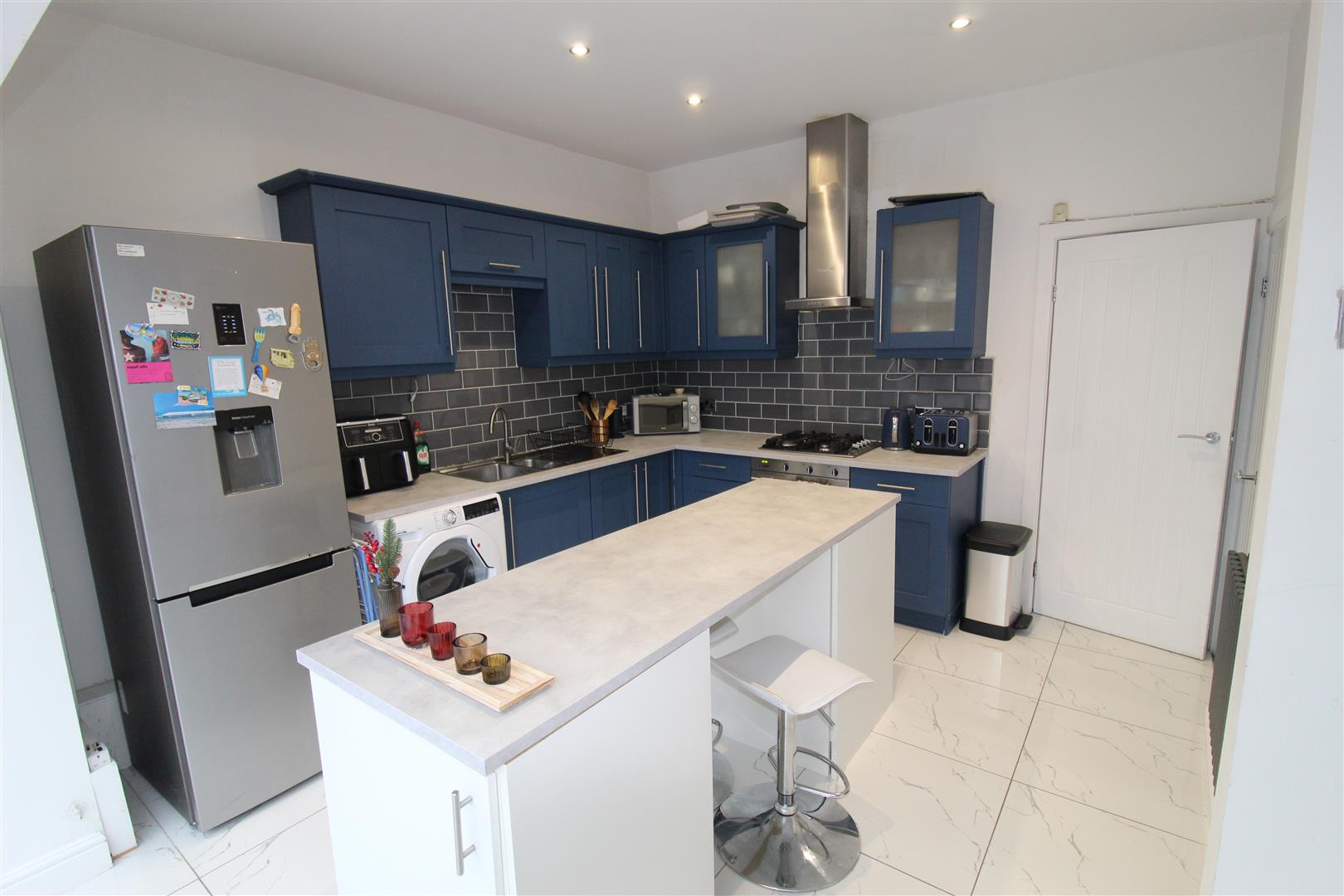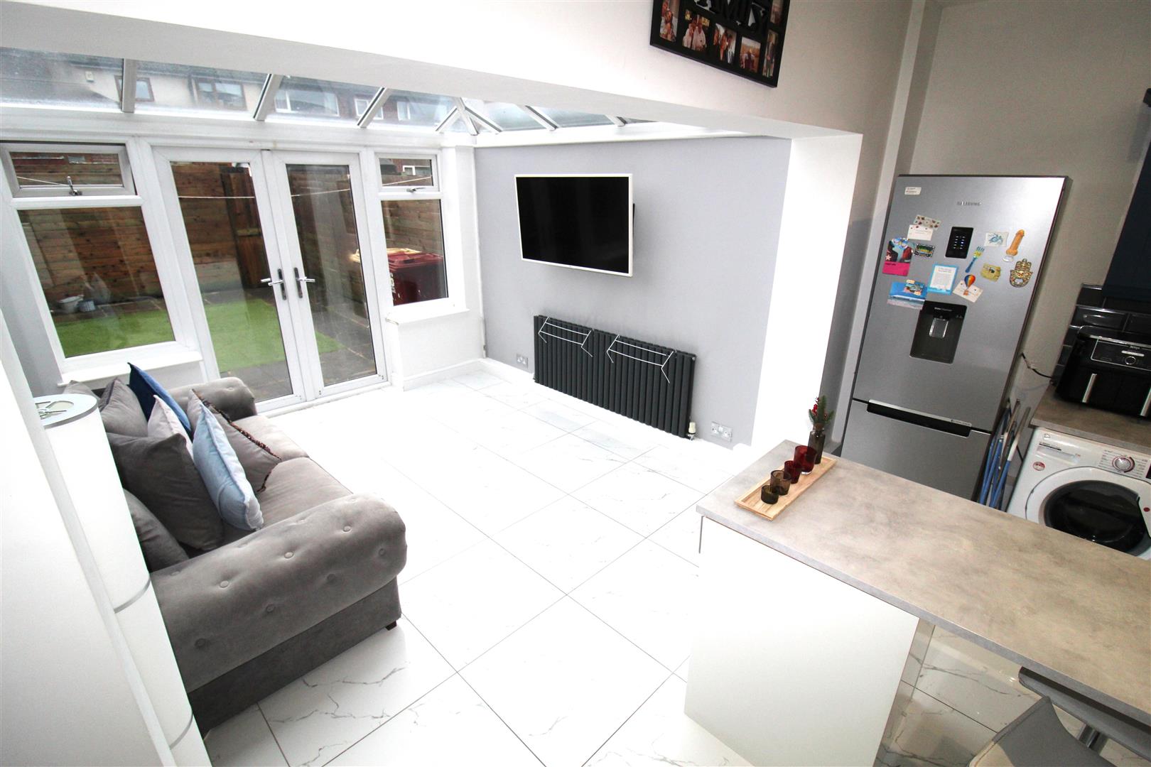 UPVC double glazed window to rear, boiler cupboard, two doors.
