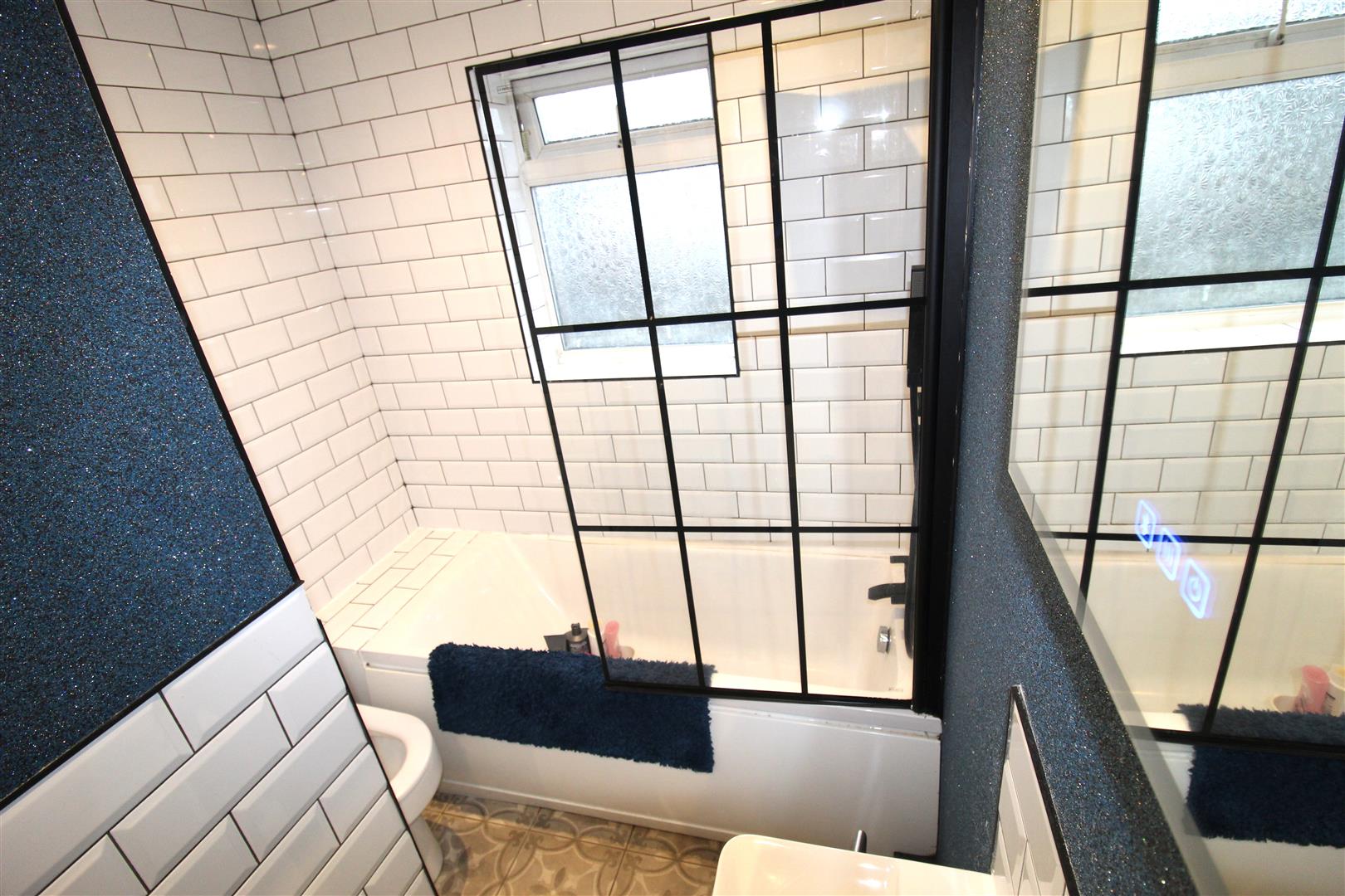 UPVC frosted double glazed window to rear, double radiator, door to: