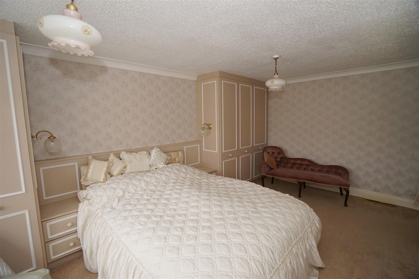 UPVC double glazed window to side, fitted bedroom suite with a comprising double triple wardrobe(s) with hanging rails and shelving, fitted matching bedside cabinets, double radiator, coving to ceiling.